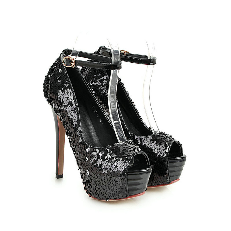 Upper material: special sequined clothInside material; PUWaterproof platform height: 3.5Heel height: 13.5 cmSole material: non-slip rubber soleHeel shape: stiletto