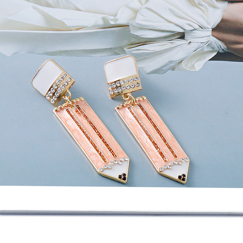 Product information:Color: light pinkMaterial: AlloyPopular elements: metal, rhinestone, cartoon, geometryInlaid material: DiamondStyle: Women'sShape: PencilStyle: European and American
