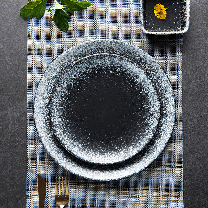 Product Category: BowlMaterial: PorcelainPattern: OtherShape: roundcolour: A: shallow pan—moxue,B: shallow dish-twilight,C: shallow dish-shiny black,D: shallow dish-Mocha,