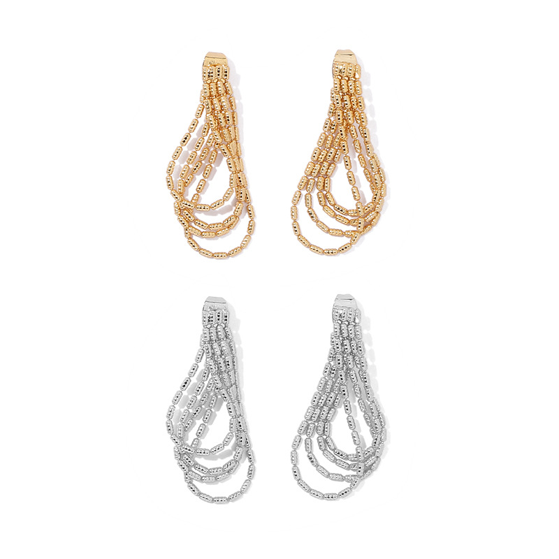 Material: BrassStyle: Women'sShape: U shapePackaging: Individually packedColor: gold, white goldPopular elements: tassels