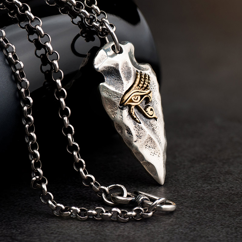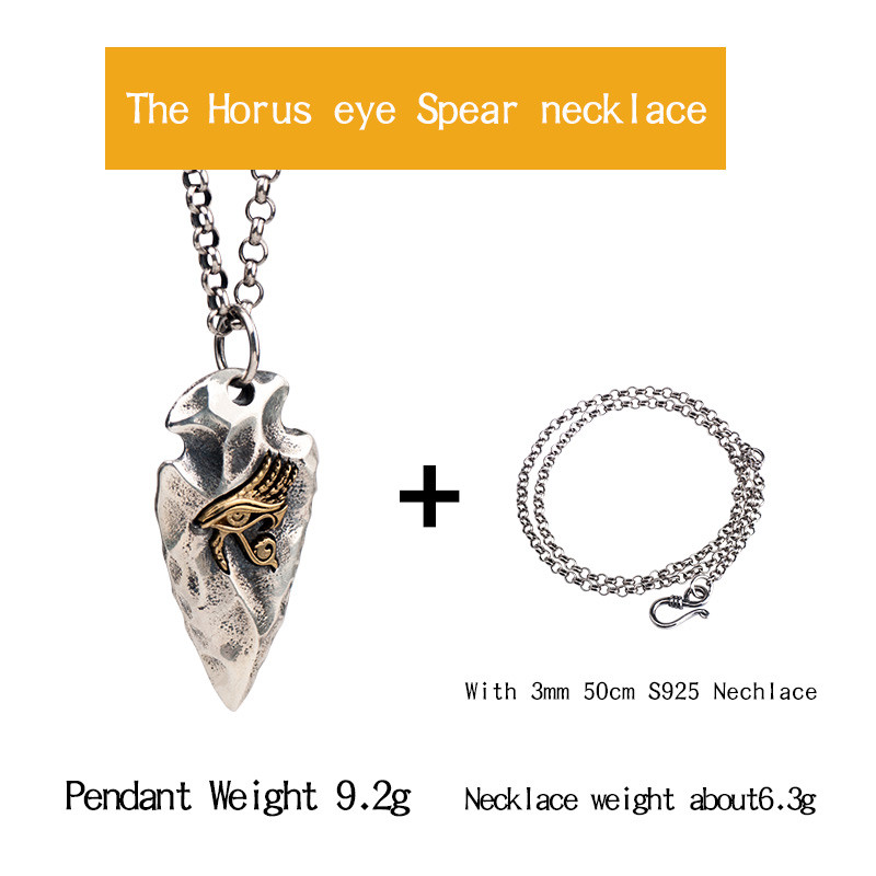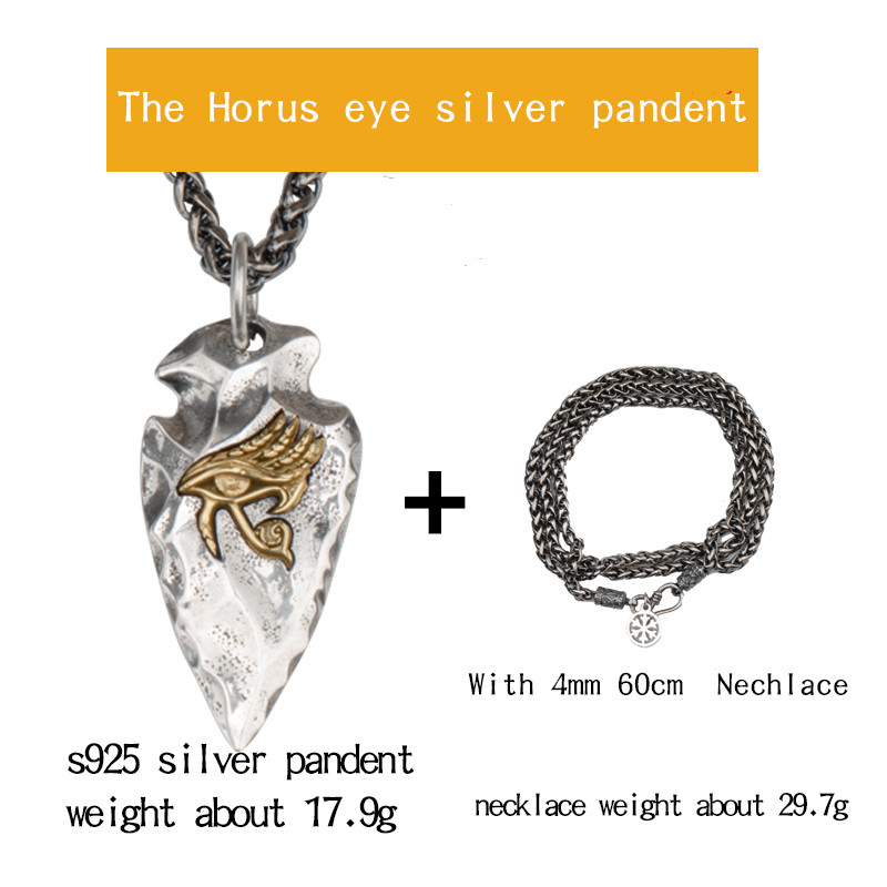 Vintage Thai Silver Stone Spear Pendant Egyptian Eye Of Horus Necklace