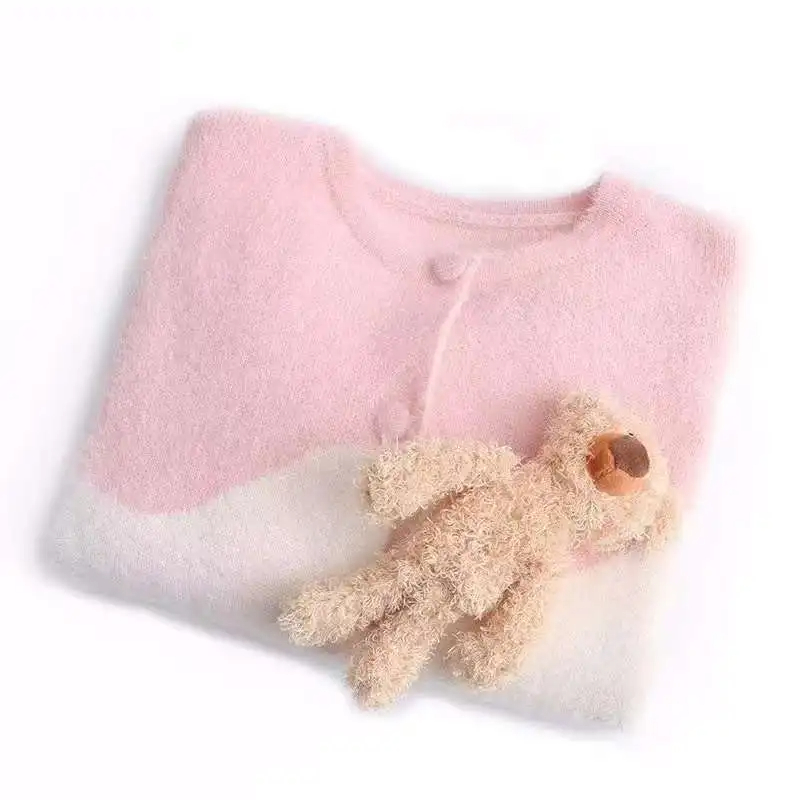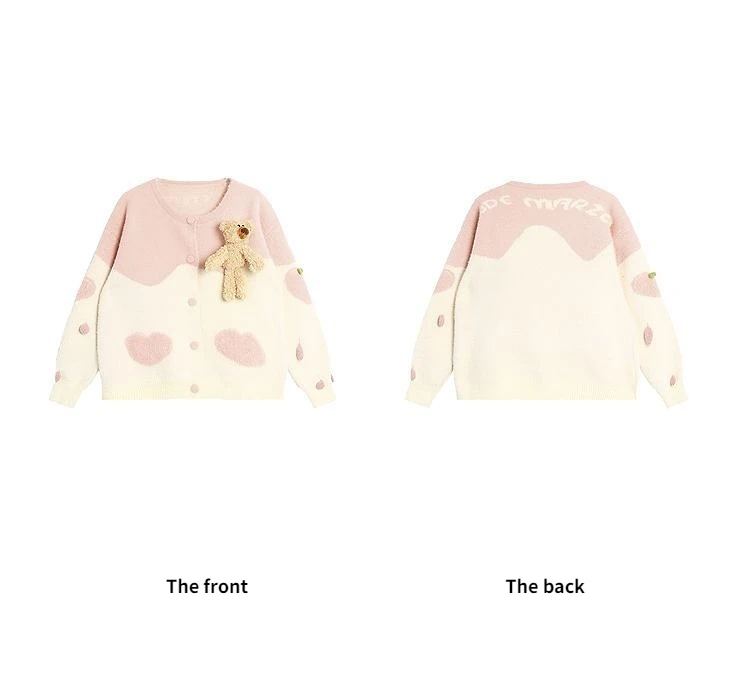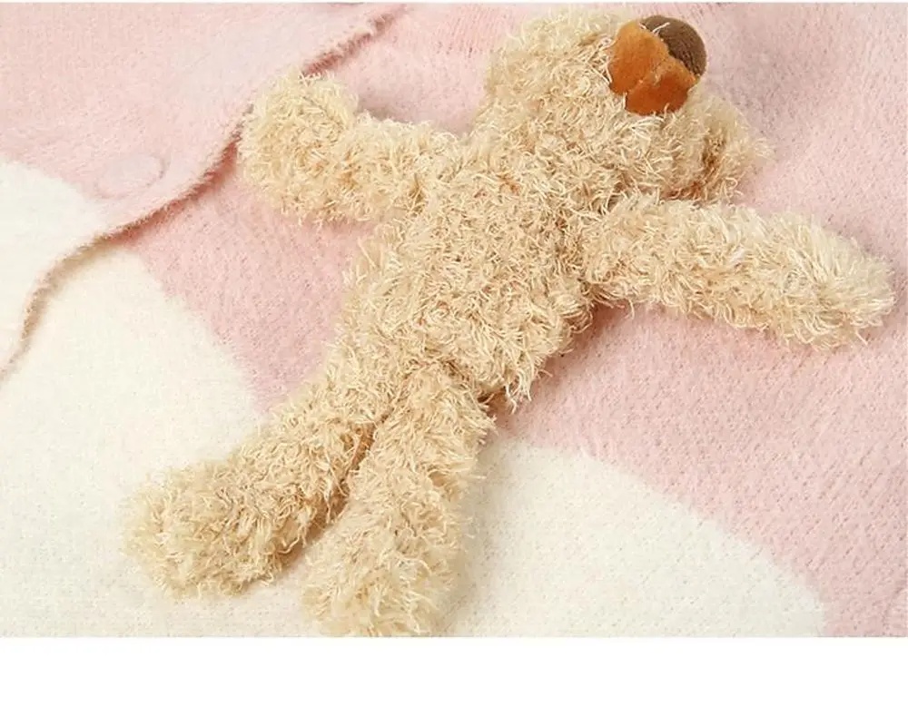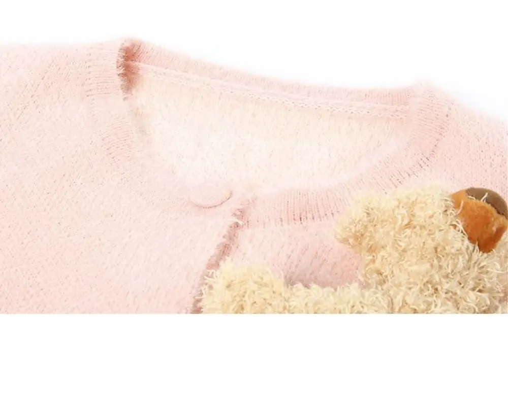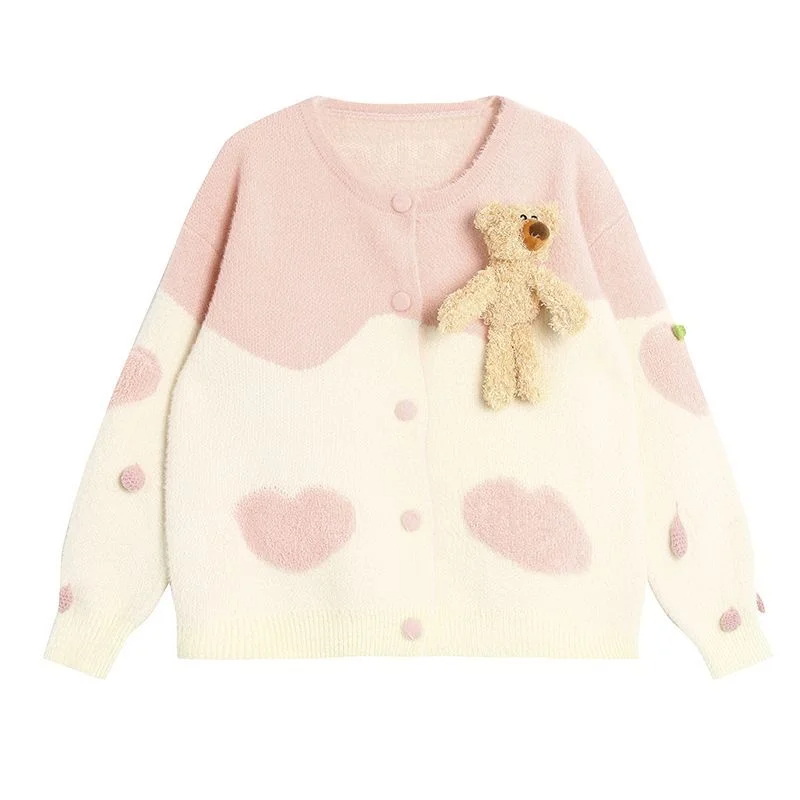 Mink-like Wool Knitted Cardigan Sweet Bear Embroidered Sweater Winter Coat