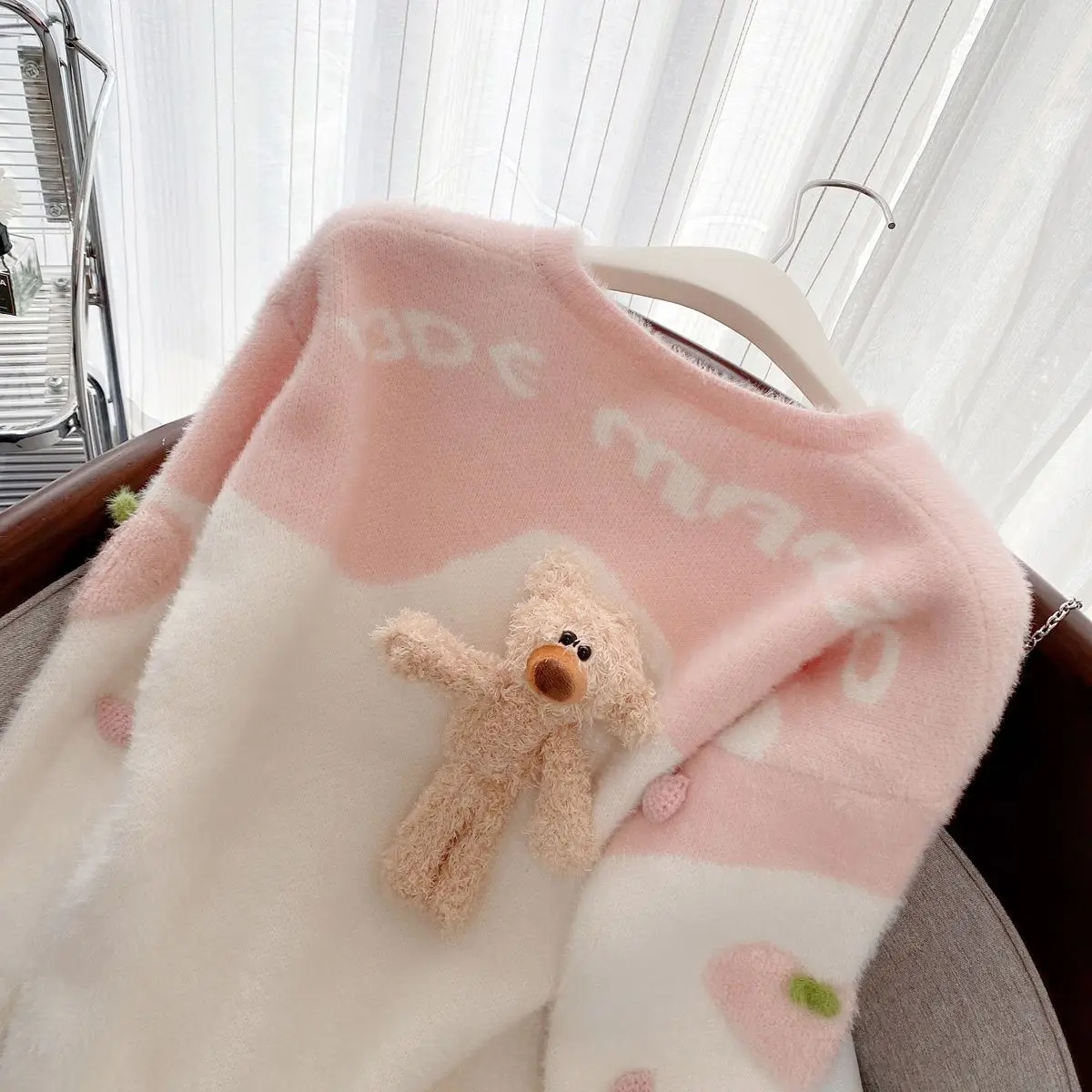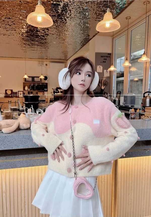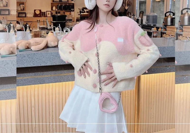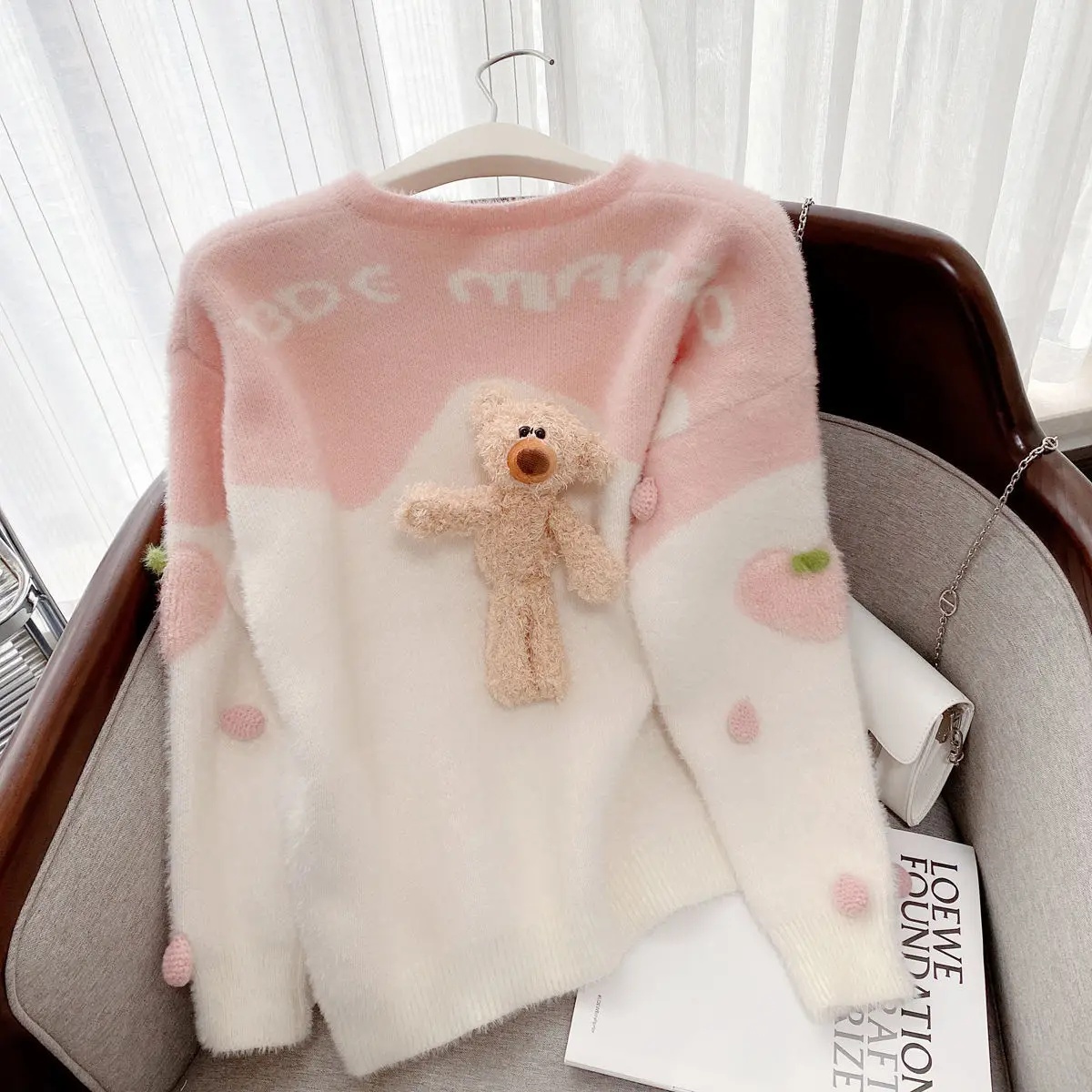 Mink-like Wool Knitted Cardigan Sweet Bear Embroidered Sweater Winter Coat