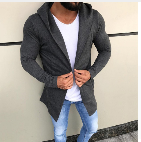 Men's casual hoodie men's casual hip-hop style long cardigan pure color sweater tide