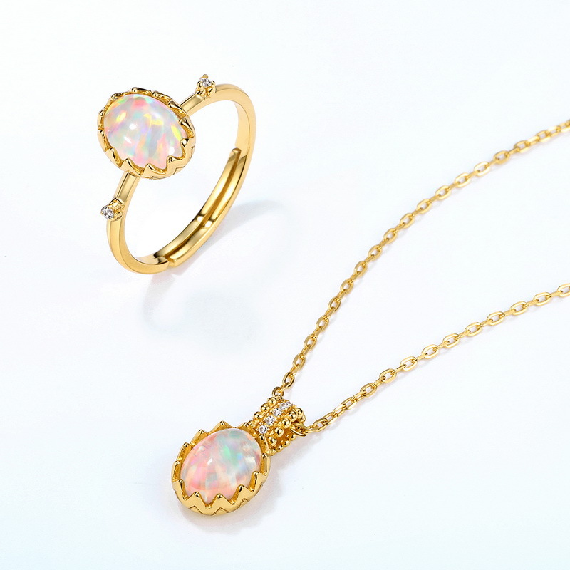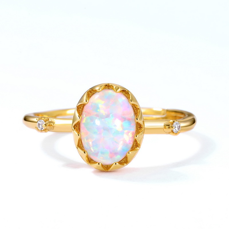 Size information:Main stone 8 * 6mm synthetic opal / 1.2 * 1.2mm white zirconium