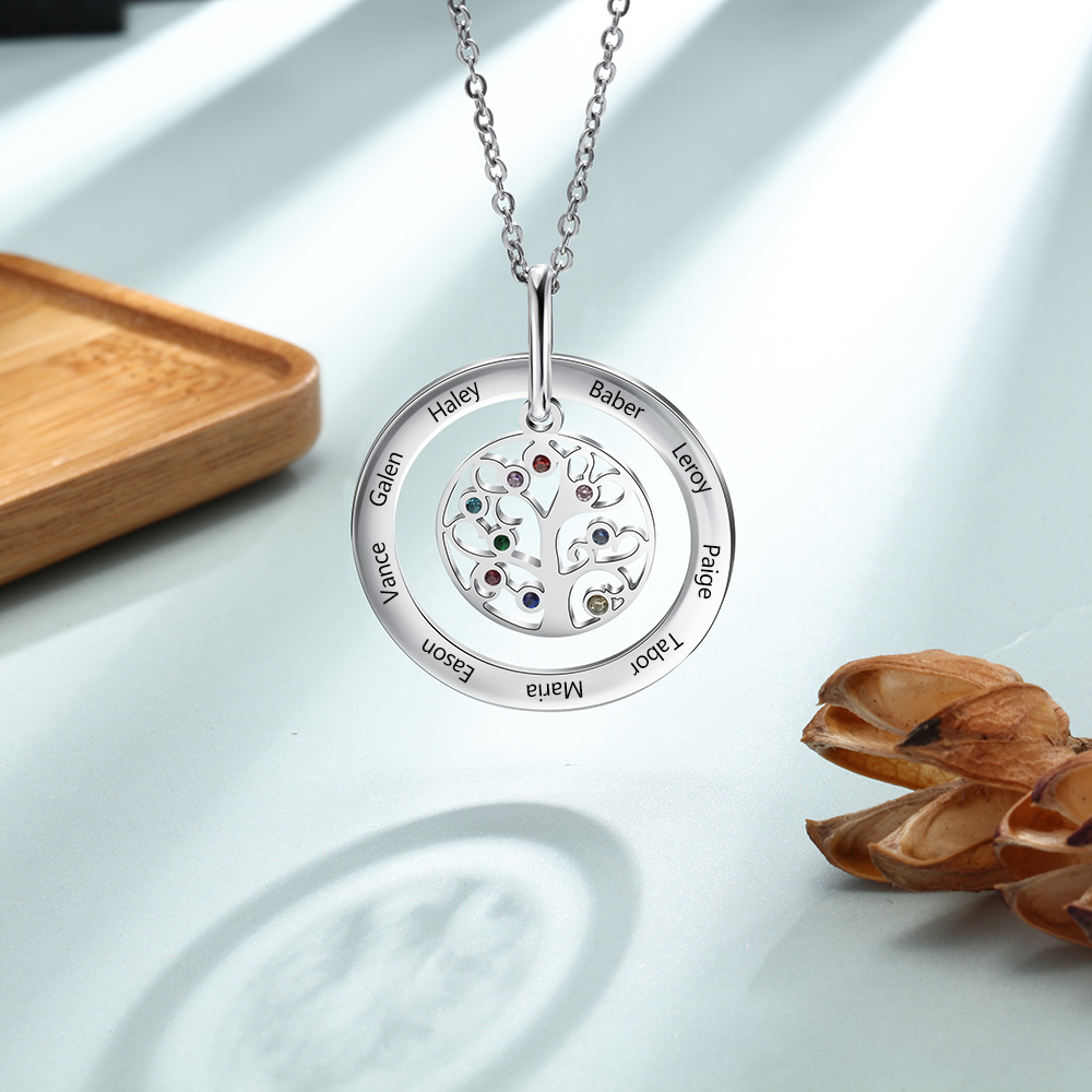 Personalized Family Tree Pendant Necklace with Birthstones Tree of Life Custom Name Necklace Birthday Mother's Day Gift