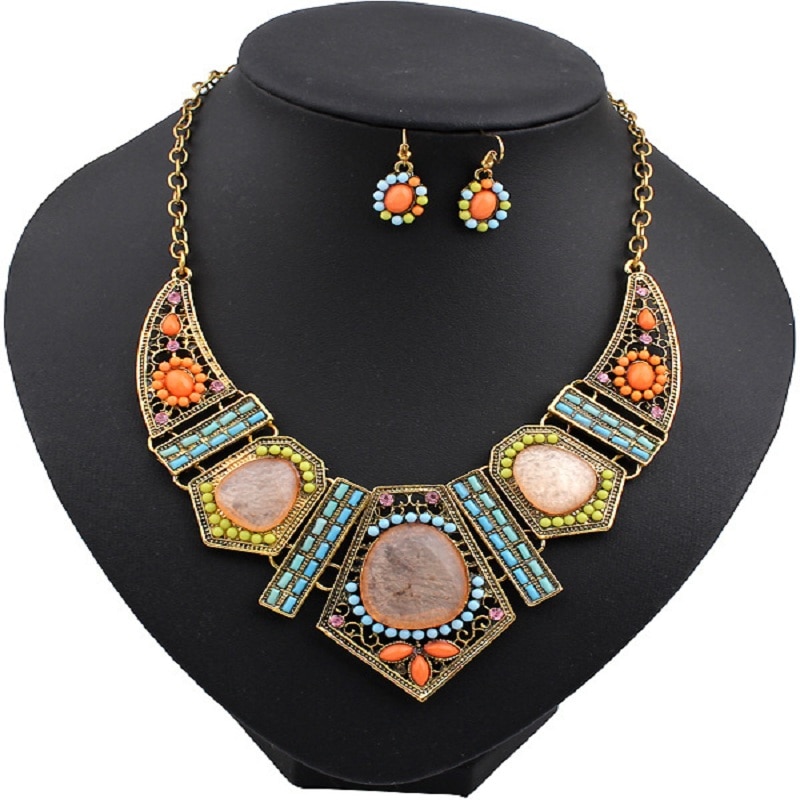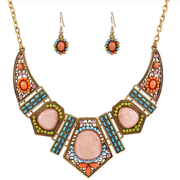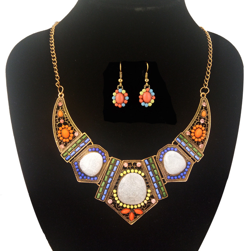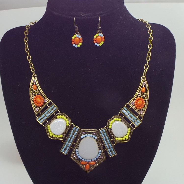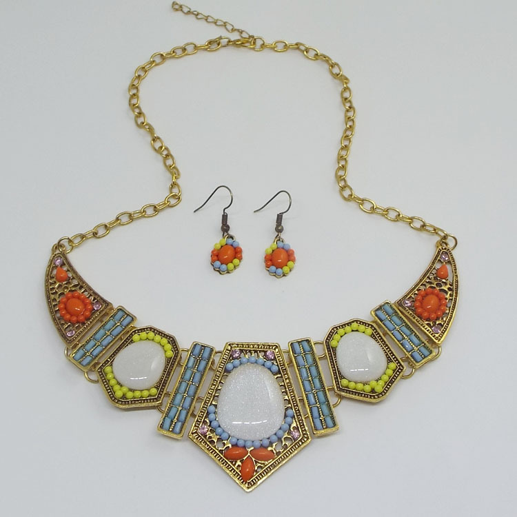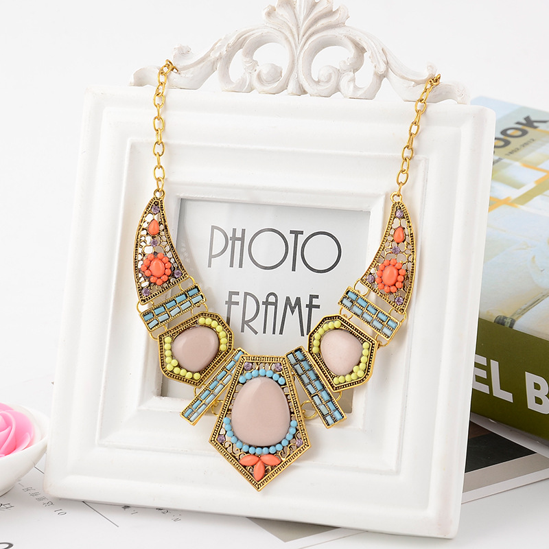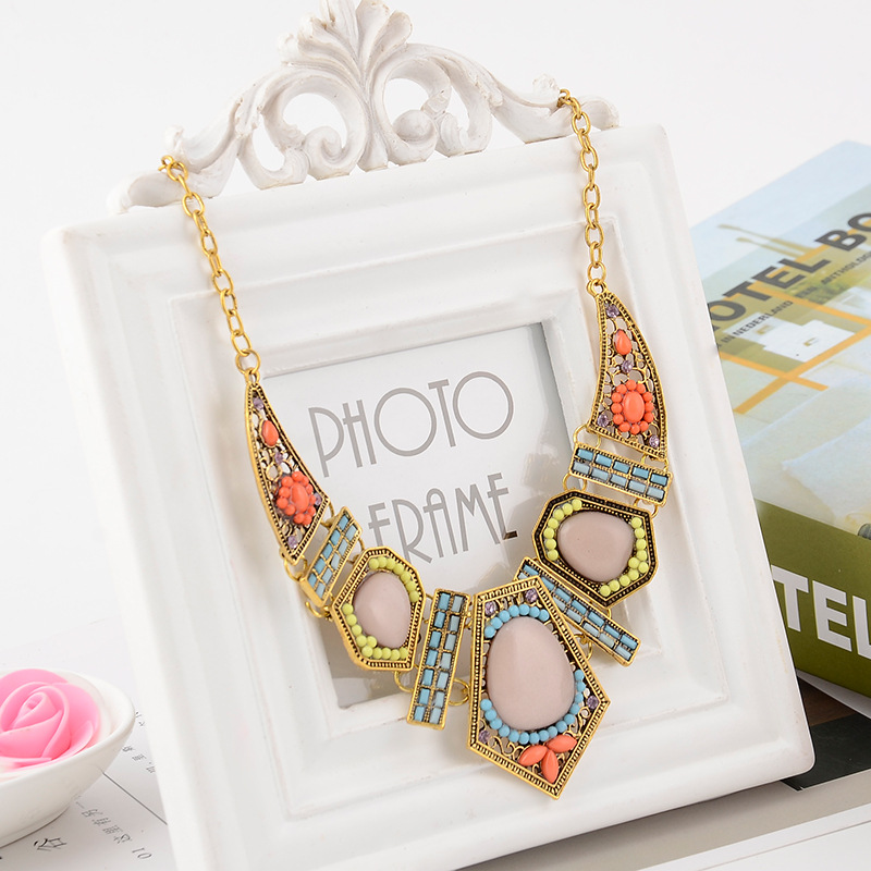 Hollow geometric colored resin diamond clavicle chain