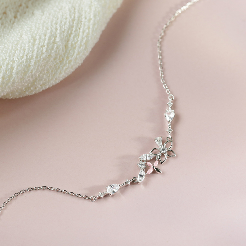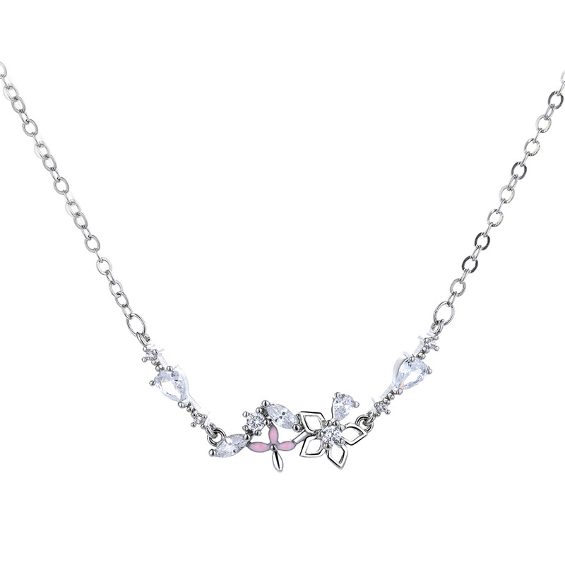 Material: Copper+3A Zircon+Drip GlueColor: Plating with Platinum PlatingSize: Flower 4 * 9MM/Total length approximately 40+5CM Adjustable extension chain