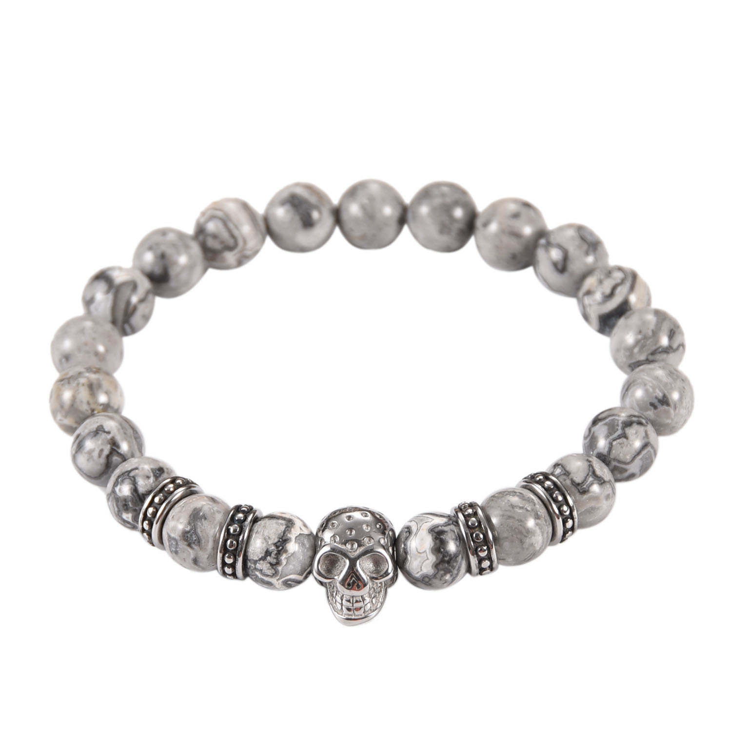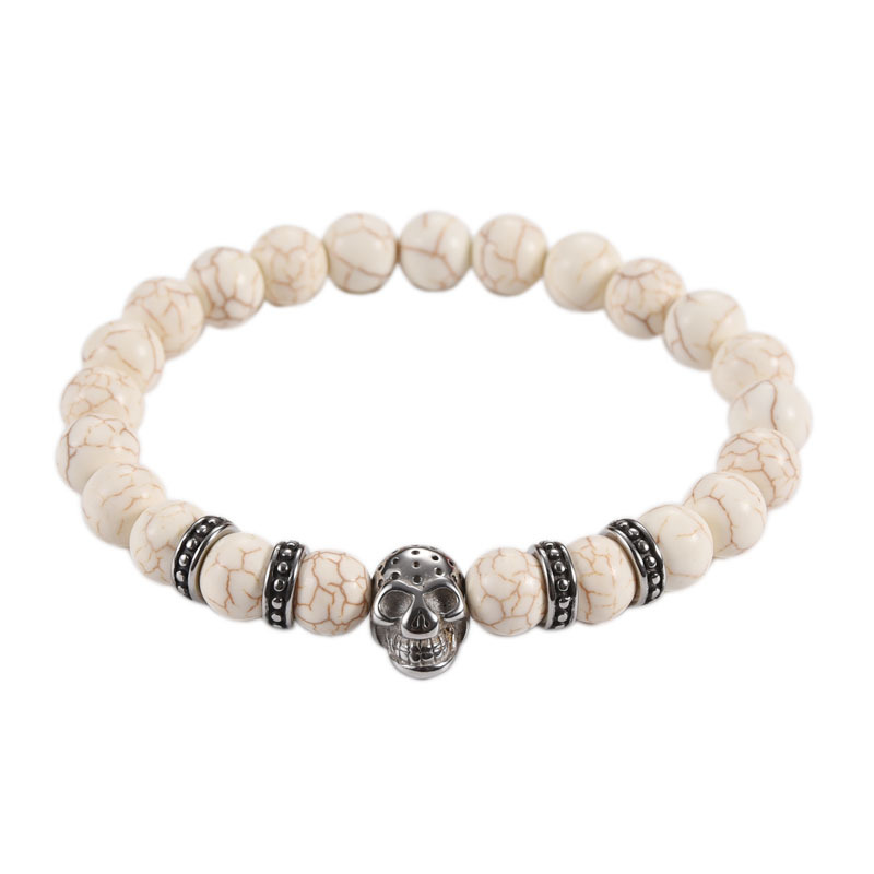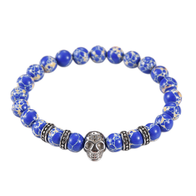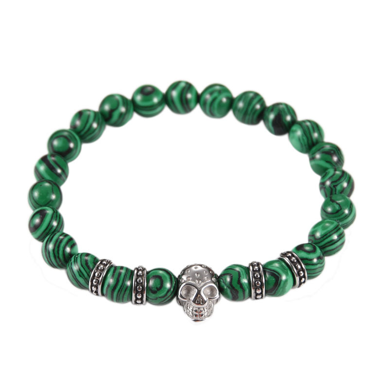 Fashion Stainless Steel Skull Head Natural Stone Bracelet