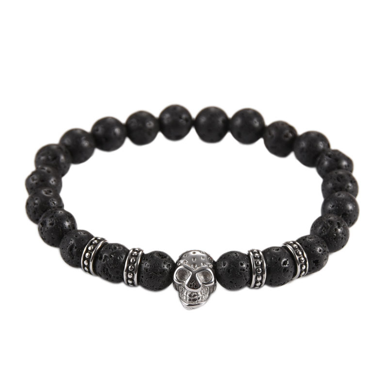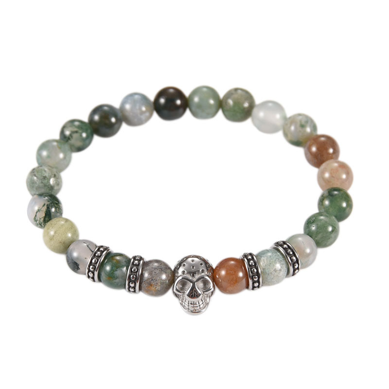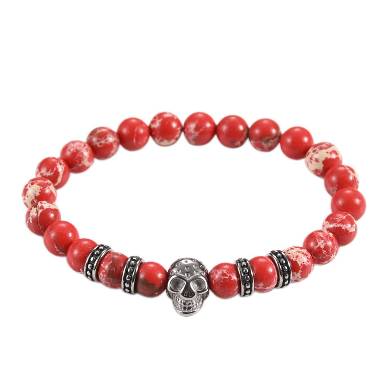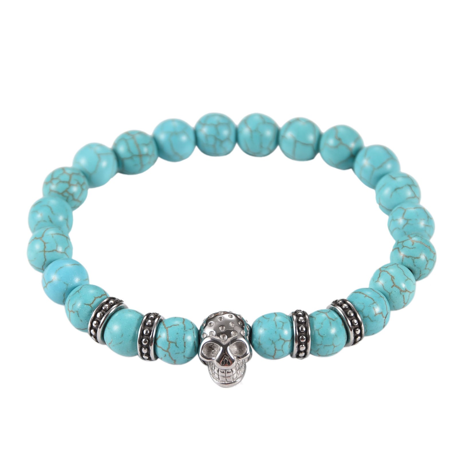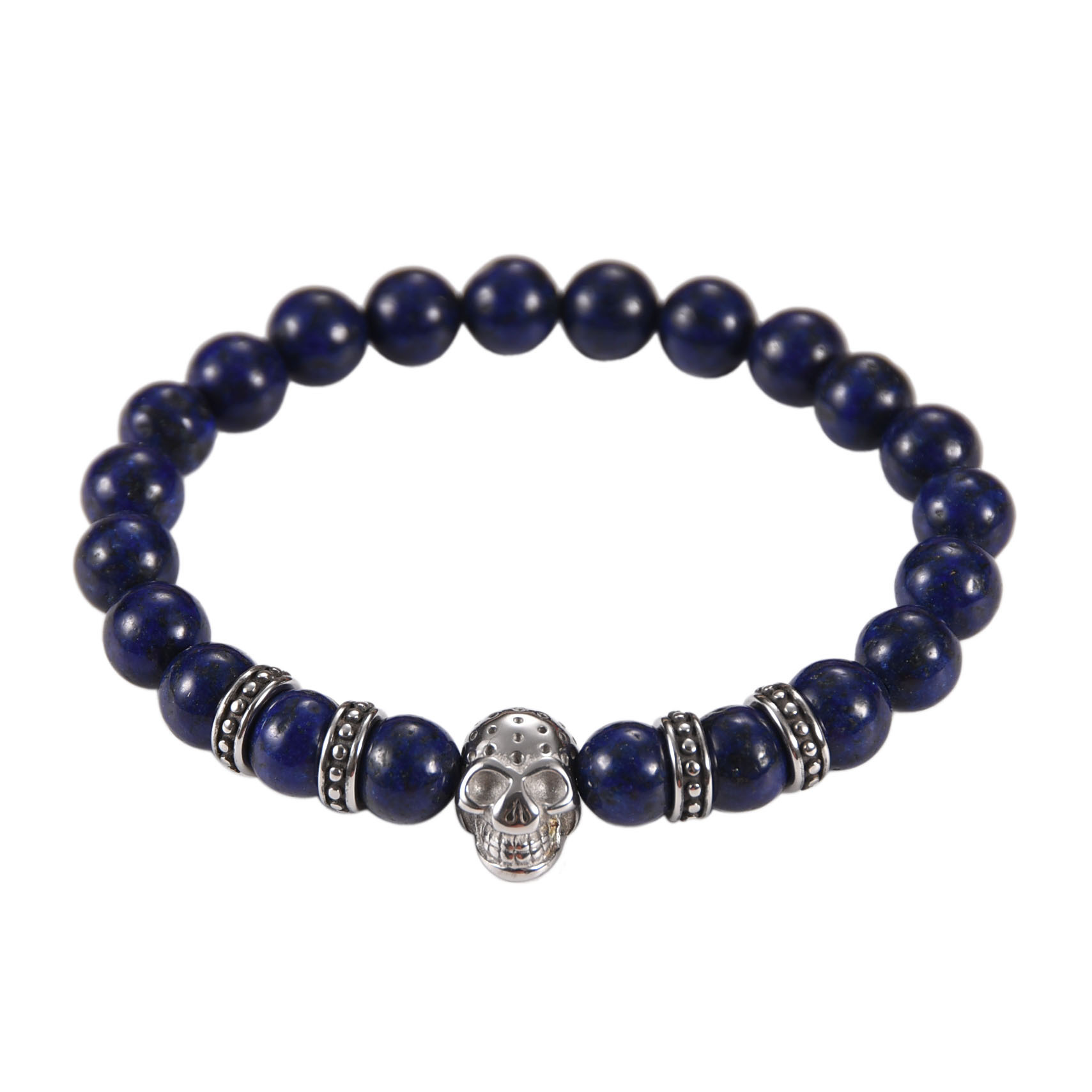 Fashion Stainless Steel Skull Head Natural Stone Bracelet