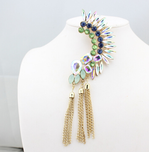 Style: European and AmericanMaterial: AlloyProcessing technology: diamondType: EarringsStyle: Women'sPackaging: Individually packedColor: [Left Ear] Sapphire, [Left Ear] Color Gem