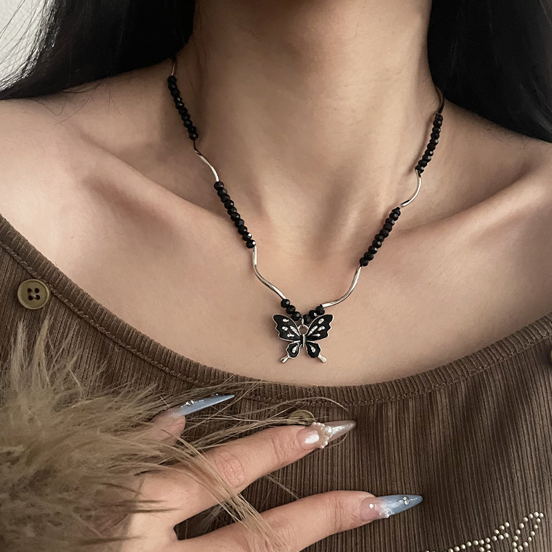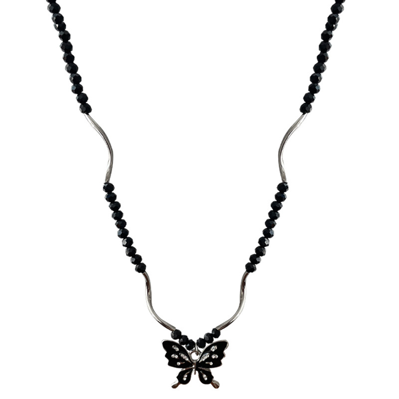 Product information:Color: Black beaded butterfly necklaceApplicable people: womenPendant material: AlloyChain style: Regular chainMaterial: AlloyModeling: insect, animal/ZodiacPopular elements: ButterflyStyle: cold wind