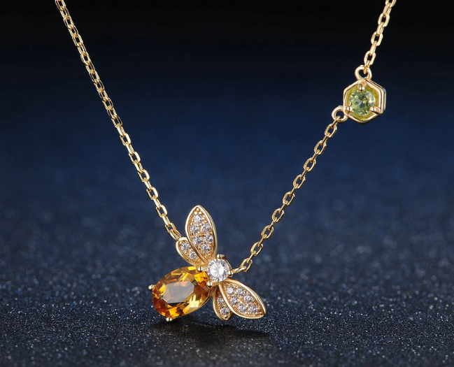 Natural citrine peridot micro-inlaid bee necklace