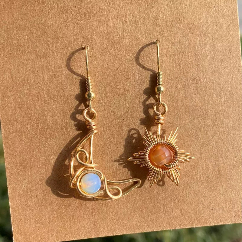 Product information :Material: metalModeling: geometric typeColor: Figure 1 of ZA-56, Figure 2 of ZA-56Popular elements: the sun, the moonPacking list:A pair of earrings