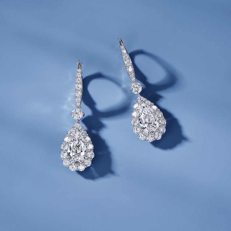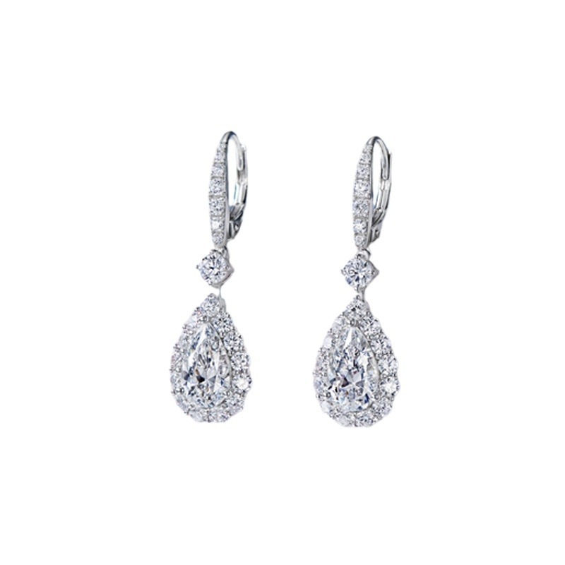 Drop-shaped Diamond Earrings Women's Sterling Silver Enclosure