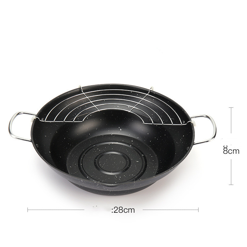Product information:Material fine ironFeatures non-stick panPot bottom material: single bottomDepth 8CMSpecifications 18cm, 20cm, 28cmPackage:Iron Fryer X1