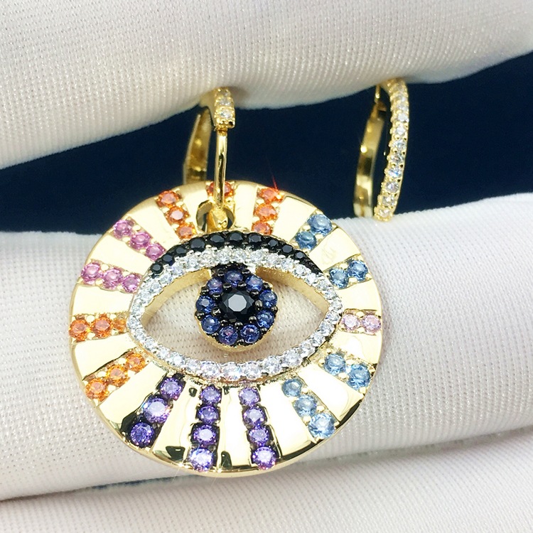 Europe and the United States big s925 sterling silver earrings women's diamonds colorful eyes earrings fashion accessories personality hypoallergenic