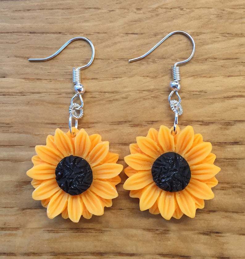 Product information:Product Name: sunflower EarringsProduct material: resinProduct size: 2.5cm in diameterProduct weight: 6gProduct color: picture color