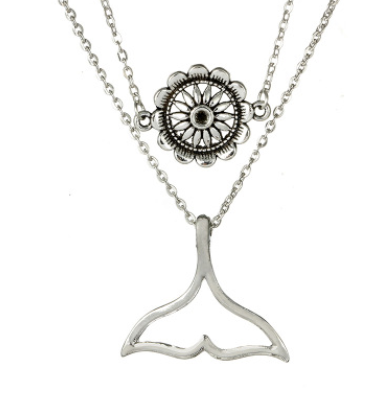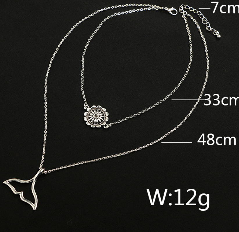 Hollow short trade jewelry pendant fishtail alloy flower double necklace