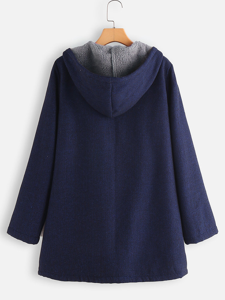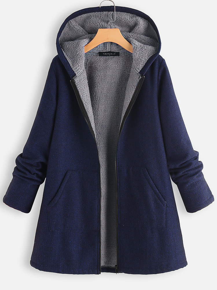 New Solid Color Hooded Warm Cotton Jacket With Pockets