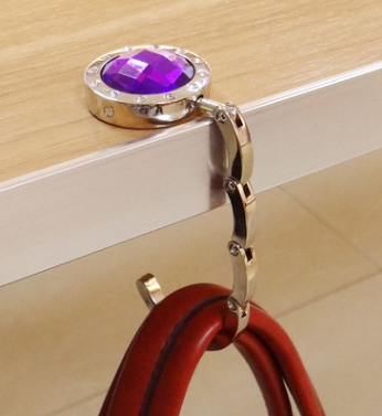 Fashion ladies crystal bag hook personality purple diamond metal bag hook