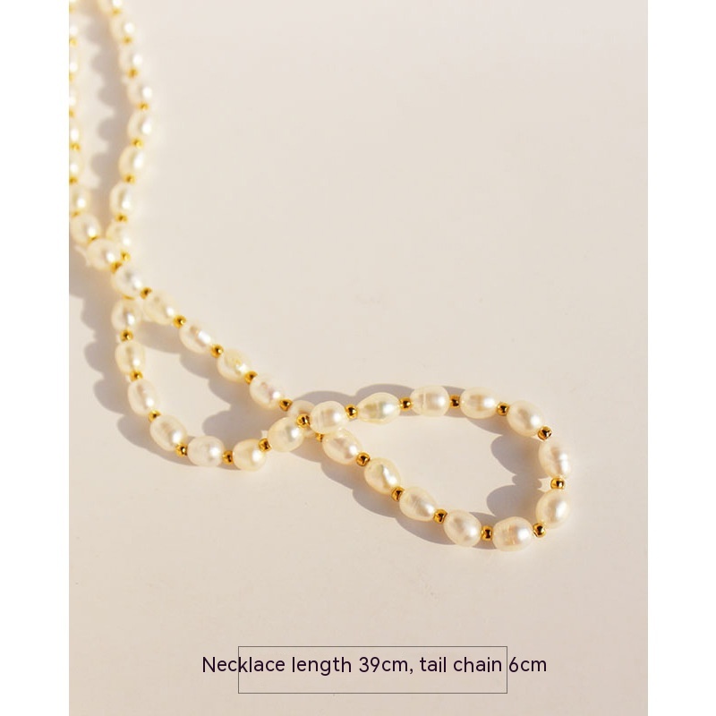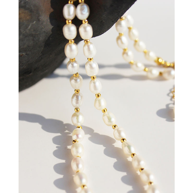 Pearl width:0.5cmLength:39cm+tail chain 6cmMaterial: Brass/Freshwater PearlsCraftsmanship: brass with gold plating