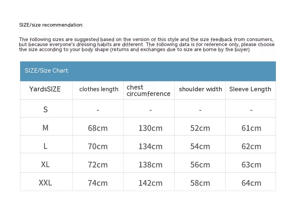 1. Asian sizes are 1 to 2 sizes smaller than European and American people. Choose the larger size if your size between two sizes. Please allow 2-3cm differences due to manual measurement. 2. Please check the size chart carefully before you buy the item, if you don't know how to choose size, please contact our customer service. 3.As you know, the different computers display colors differently, the color of the actual item may vary slightly from the following images.