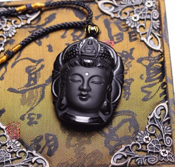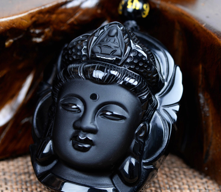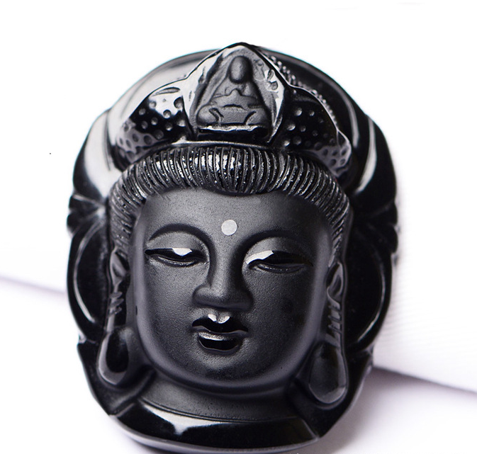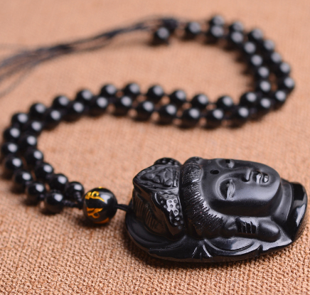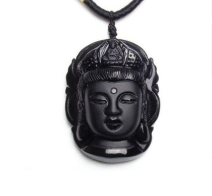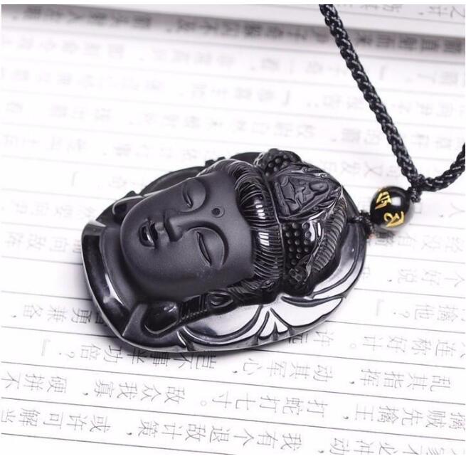 Natural Obsidian Scrub Pendant Black Guanyin Head Pendants Transhipped Buddha Head, Bead Necklace