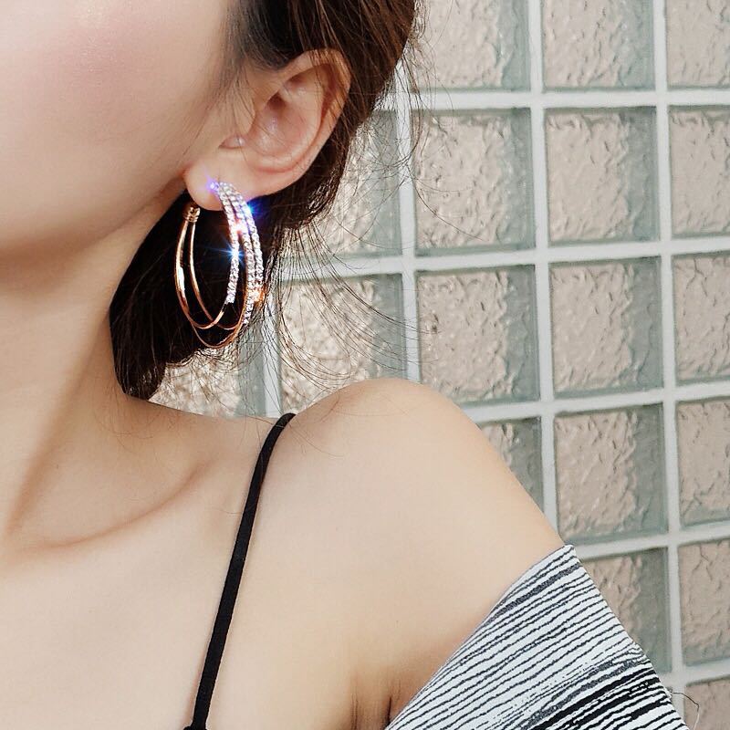 Product name: Geometric Circle EarringsProduct material: alloy diamondProduct color: golden silverProduct size: length about 4.7x1.5cm