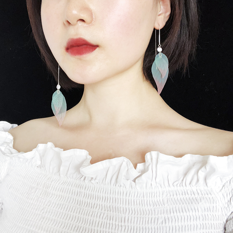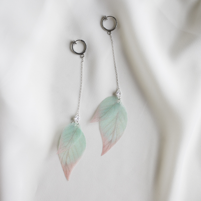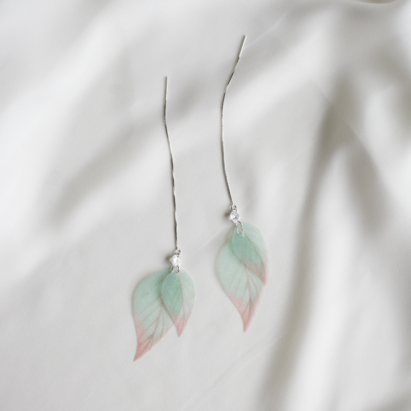 Material: mixedMaterial pattern: plant flowersStyle: originalDesign condition: brand newApplicable gender: femaleColor classification: yellow and green leaf zircon ear line, yellow and green leaf zircon invisible ear clip