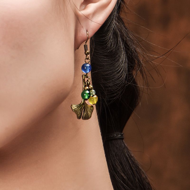 Handmade Earrings Ginkgo Leaf Eardrops Ethnic