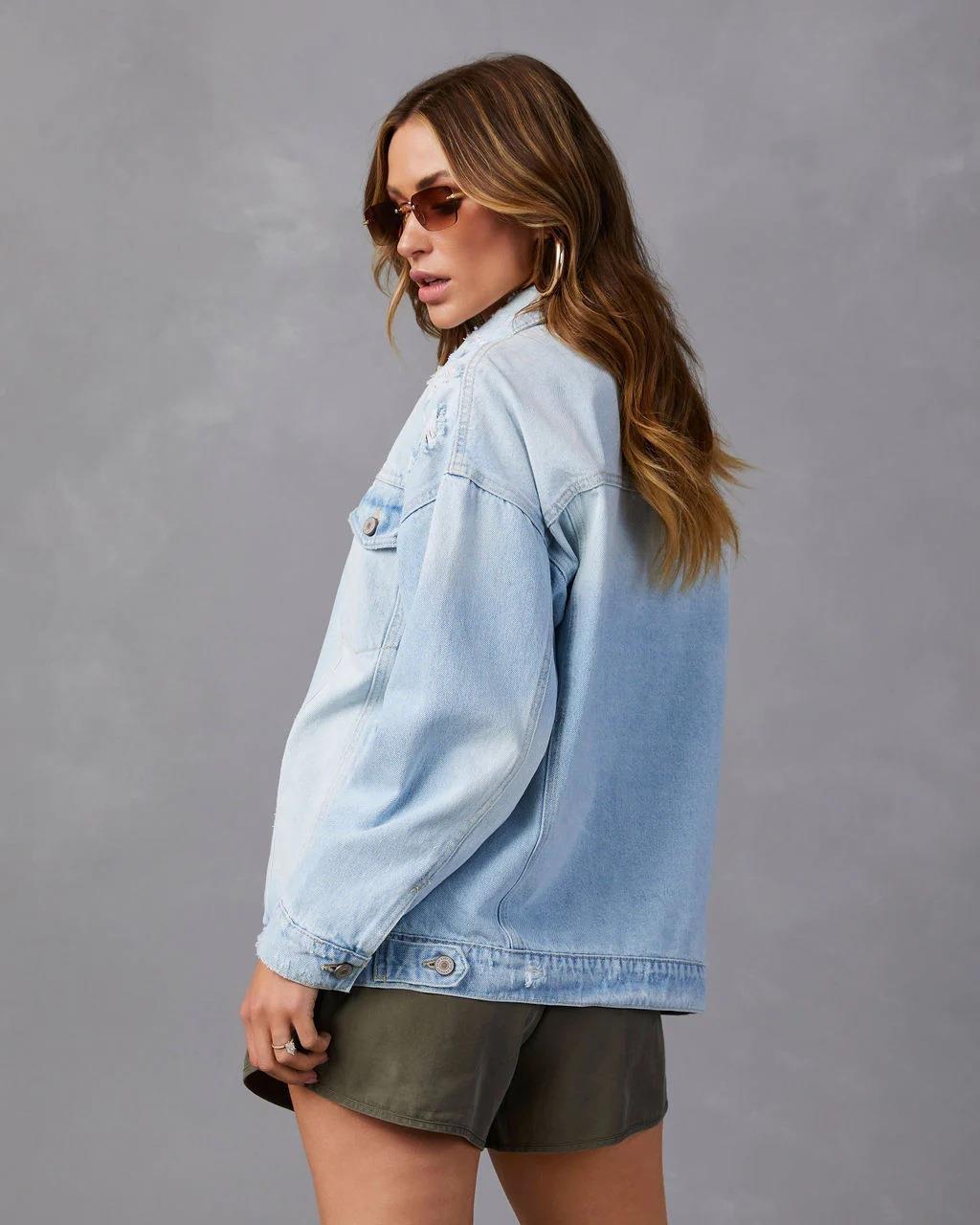 Product information:Fabric name: denim Color: light blue Main fabric composition: Polyester (polyester fiber) Size: S,M,L,XL,2XL Style type: street fashion