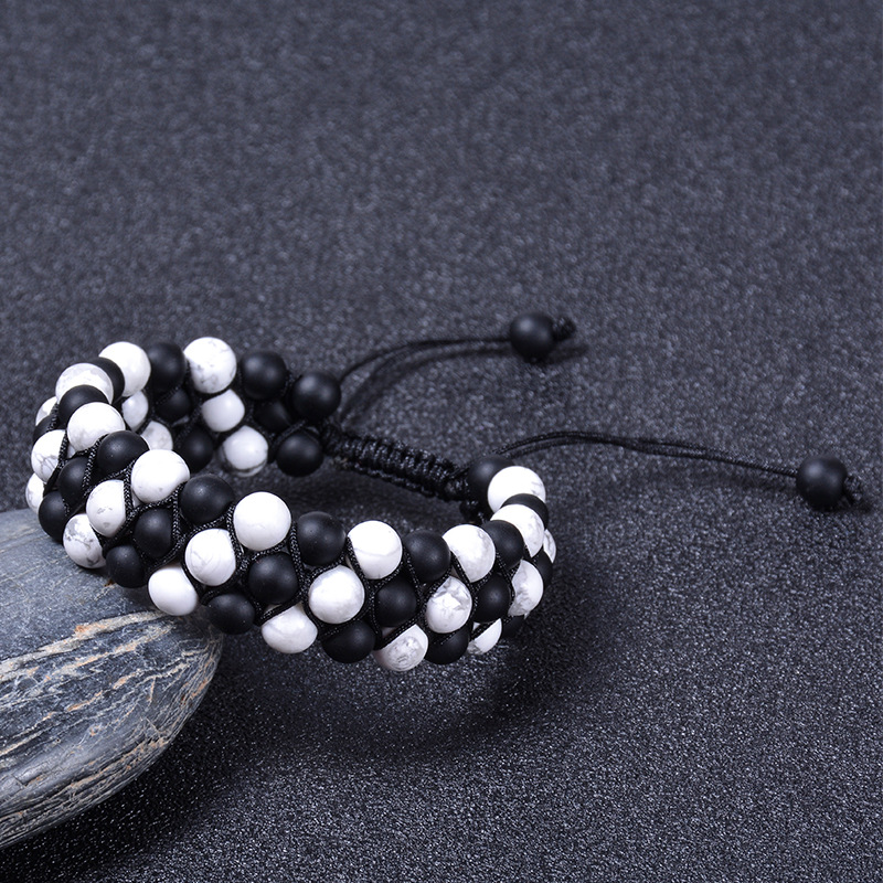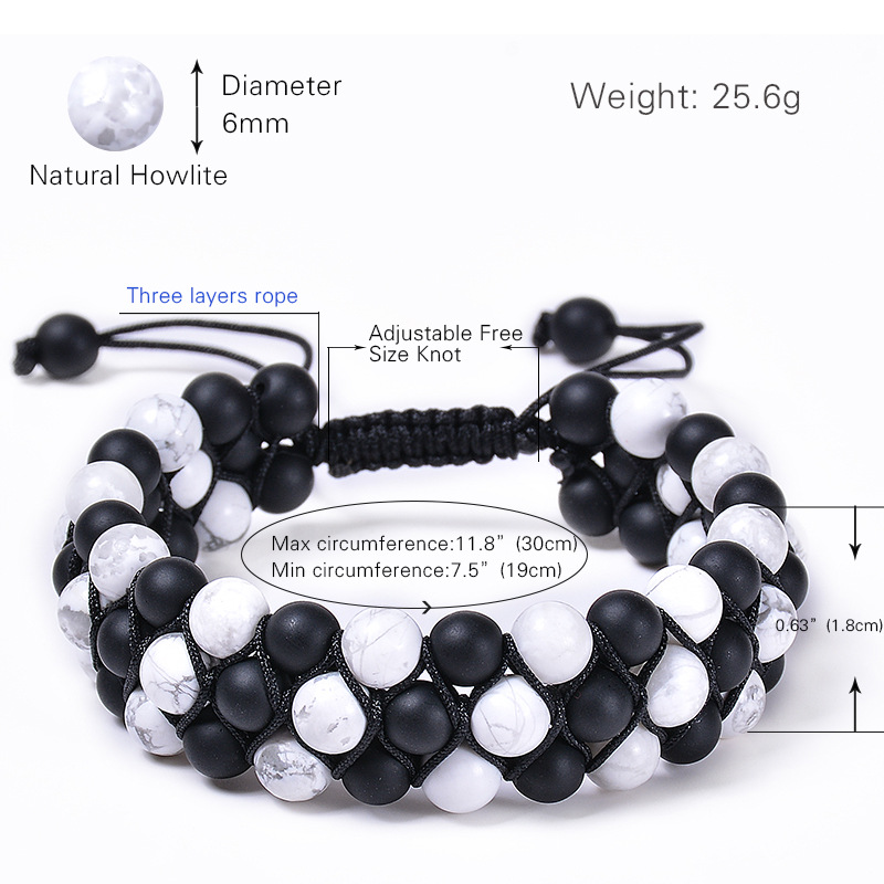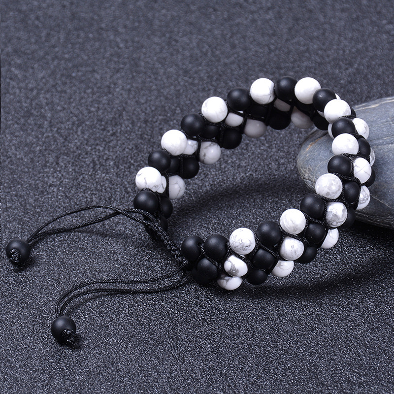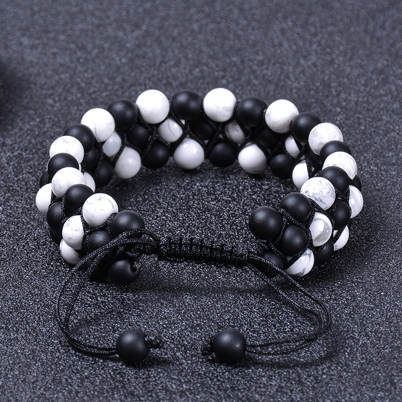 Natural Stone Frosted Stone Beaded Bracelet Iron Ore Double Wrap Braided Bracelet