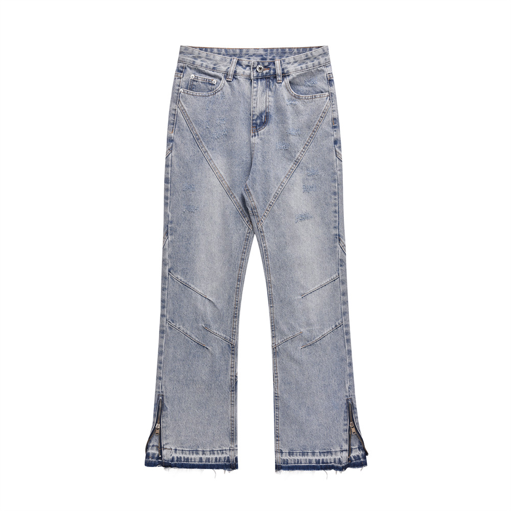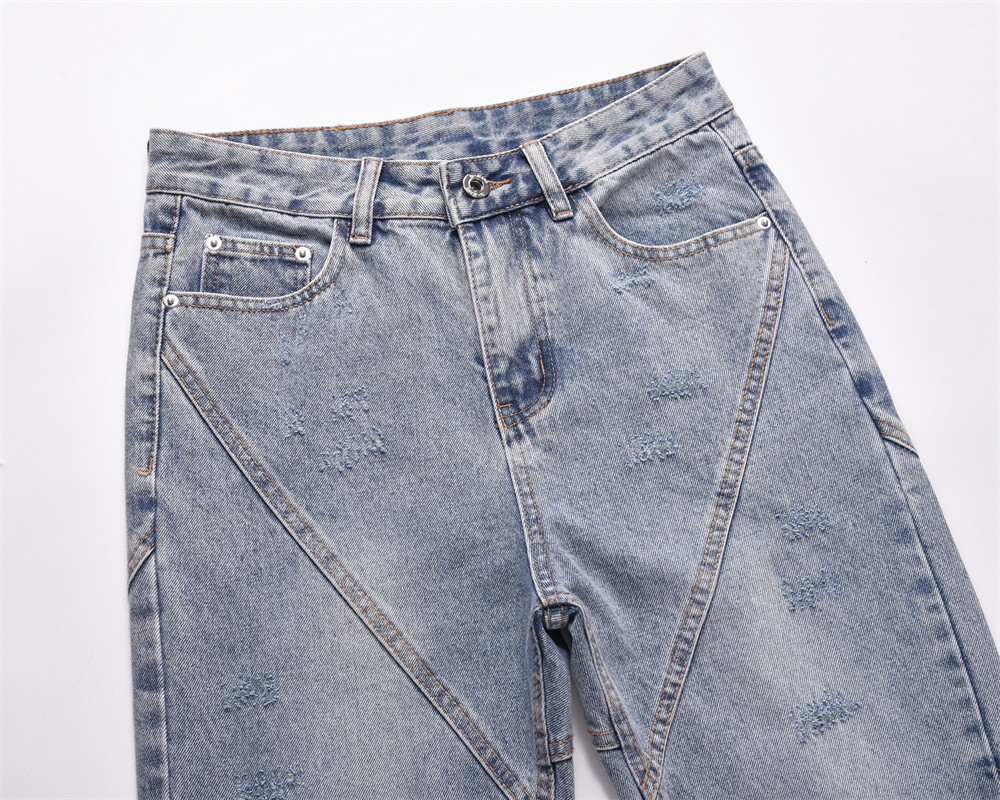 Fashion Stitching Denim Straight-leg Trousers Men