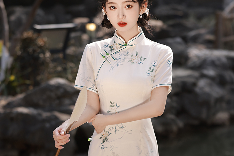 Product information: Pattern: Big flowers Style: Retro style Style: Long cheongsam Lapel shape: slanted lapel Color classification: Long style Material composition: Polyester