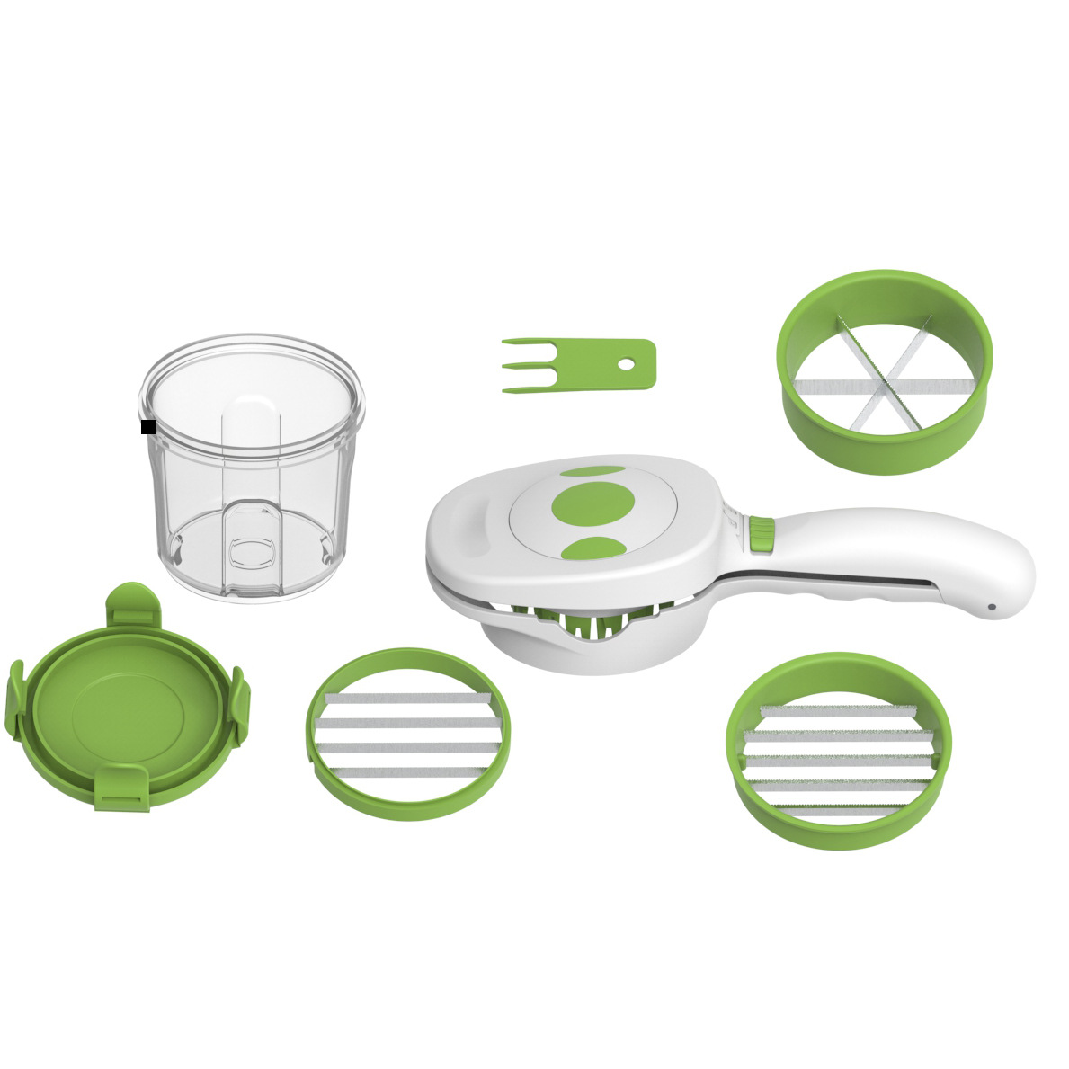 Materials form: ABS, stainless steel with Ss420J2 or 420J1N for all the blade, AS collection cup, PP cup lid and silica gel seal ring; Product dimension: 220 X 86 X 120mm; Max. cutting diameter: ¢70mm; Accessory: 3/4/5 pieces blades; Collection cup: 220ml; Mail-box packing sixe: 125X90X220mm Net Weight: 350g with single product and color box