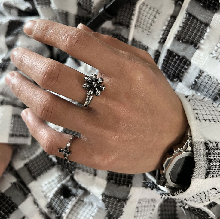 Material: Titanium steelPattern: Plant flowersColor classification: Flower Ring/6, Flower Ring/8, Flower Ring/10Size:Length: 1.6cm Width: 1.6cm Thickness: 0.5cm