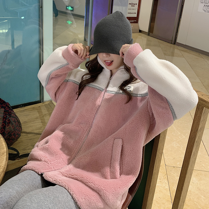 Collar: standing collarPlacket: zipperSleeve type: regularSleeve length: long sleeveThickness: PlushLength: medium lengthClothing pattern: loose