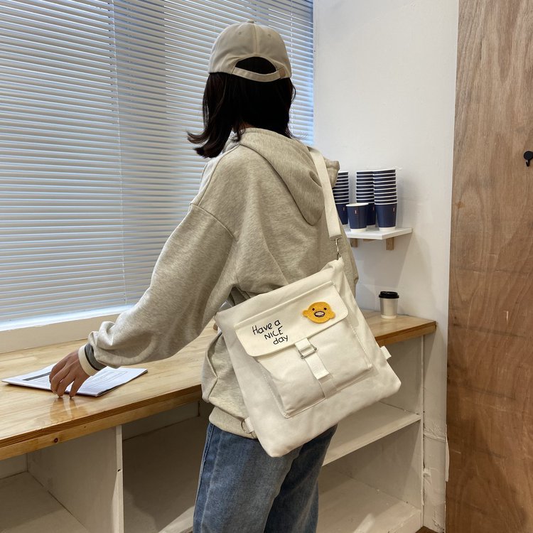 Product information:Style: fresh and sweetMaterial: CanvasLuggage trend style: small square bagBag size: largeStrap root number: singleStyle: Women's Messenger Bag