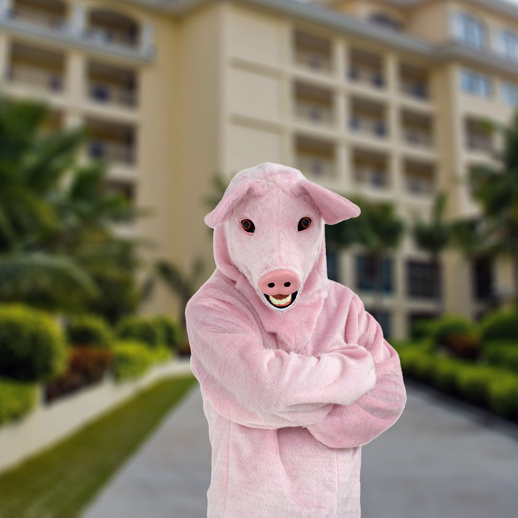 Material: ClothProp type: cartoon doll costumeColor: pink pig suit, flower pig suitSize: Free size