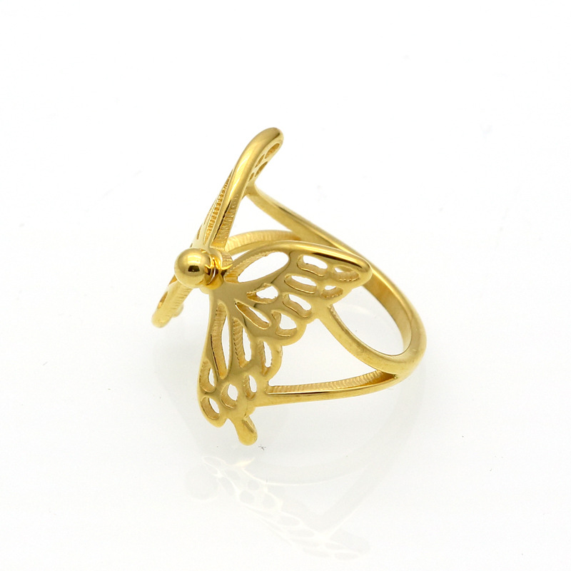 Specification:Commodity style: European, american, koreanCommodity name: Fashionable style, butterfly wings, flying hollow ring, ringCommodity material: 316l stainless steelCommodity attributes: Highly polished, vacuum plating, no color change