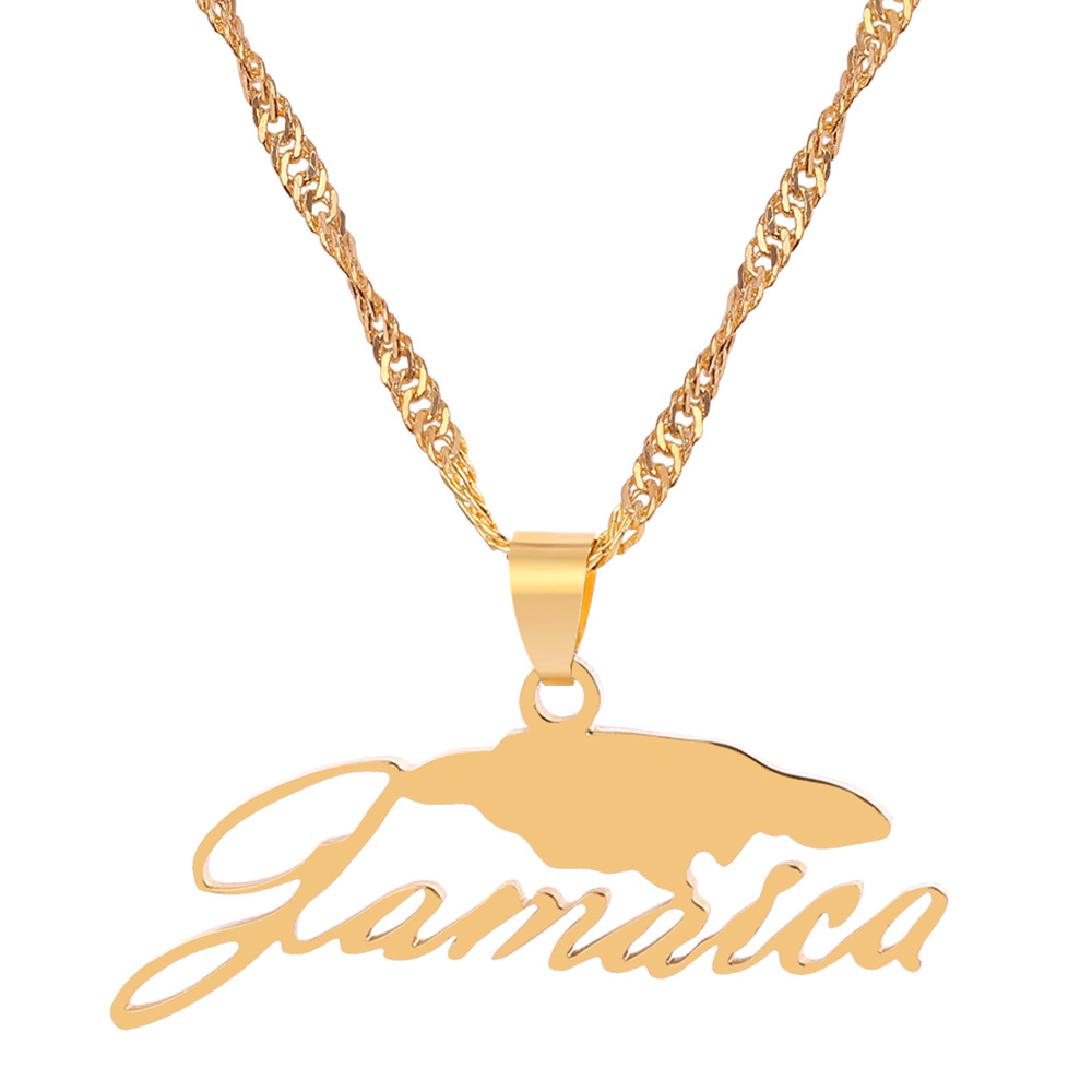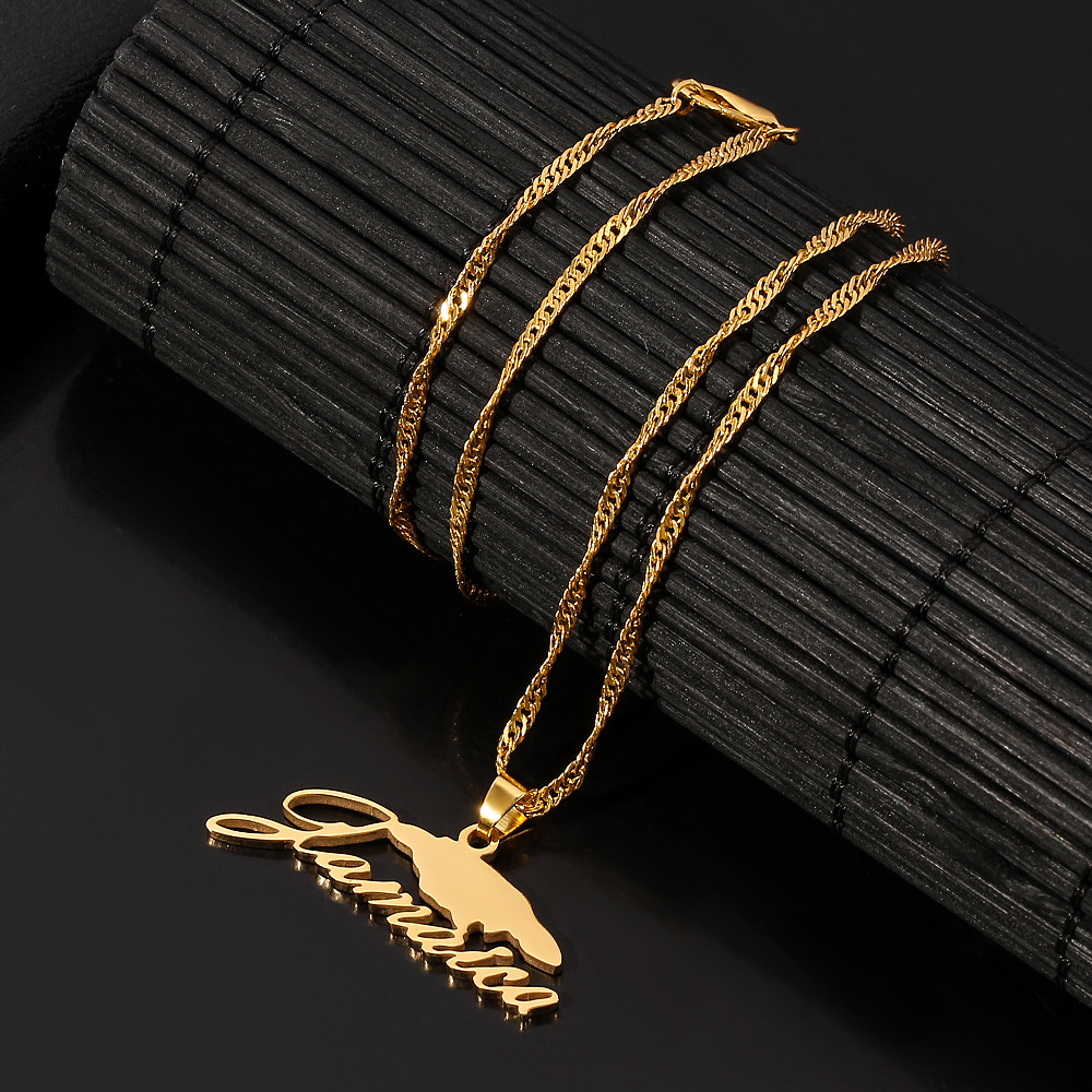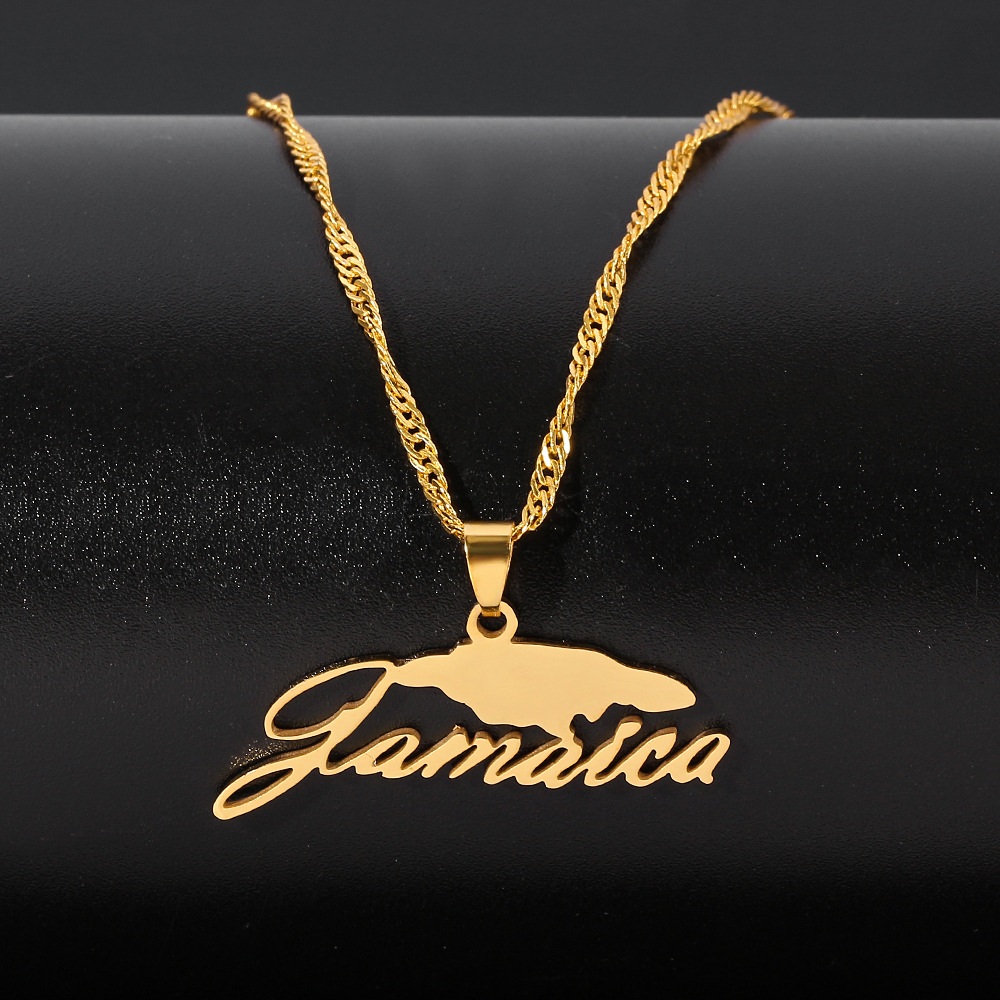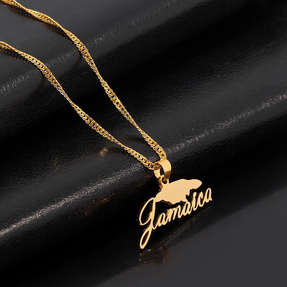 Cross-border hot new Jamaica map necklace English letters stainless steel pendant necklace manufacturers direct sales