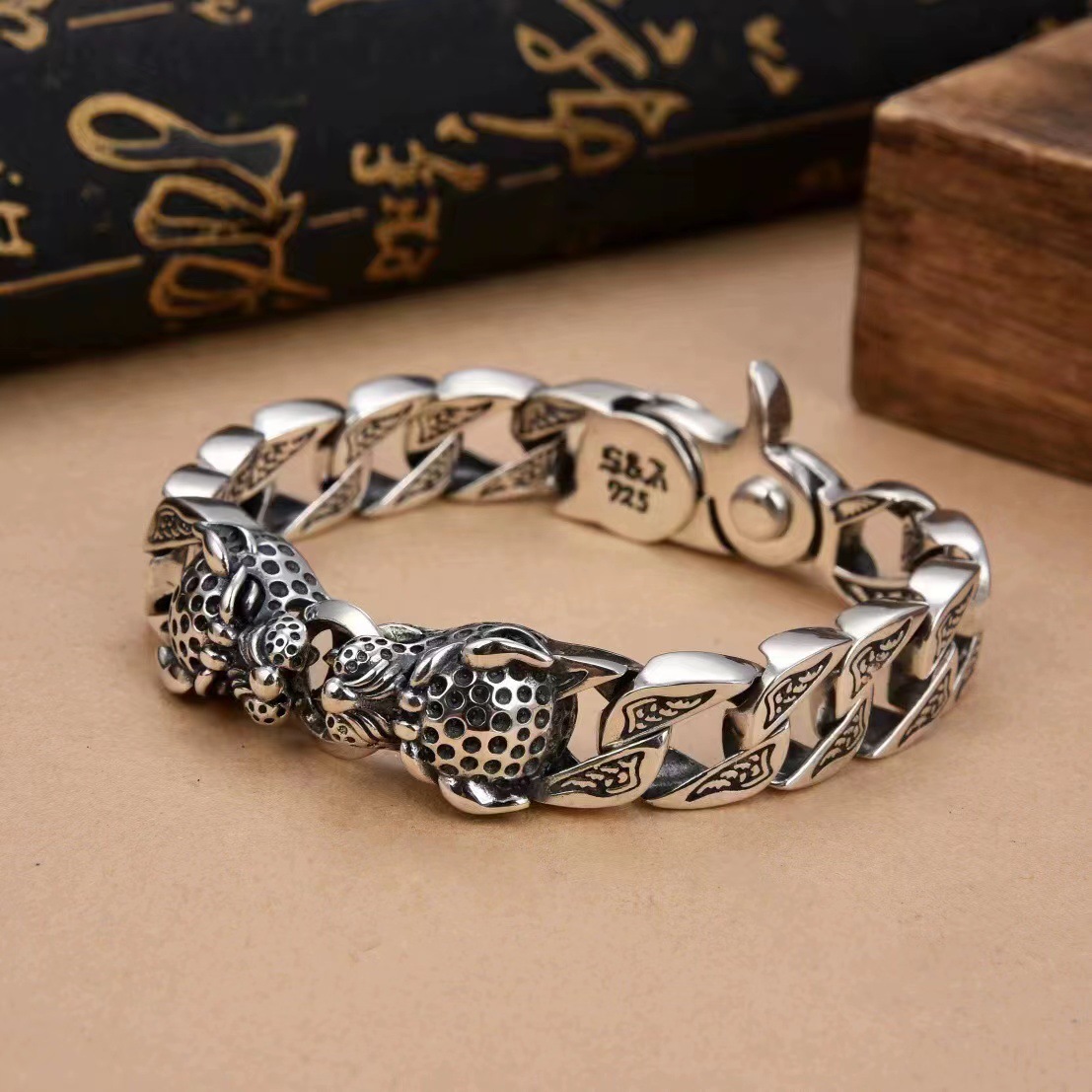 Product information:Color: double leopard head bracelet Material: mixed material Purity: 18cm,20cm,22cm Applicable people: Couple style Popular elements: beast pattern Style: Retro