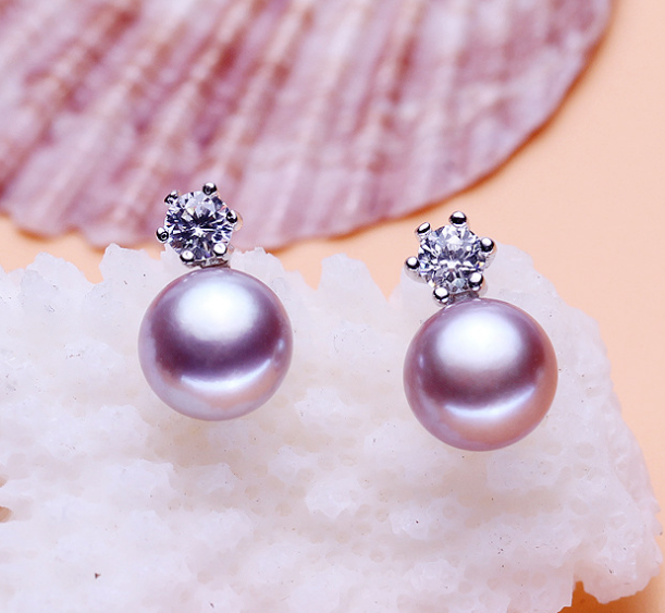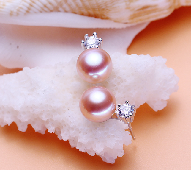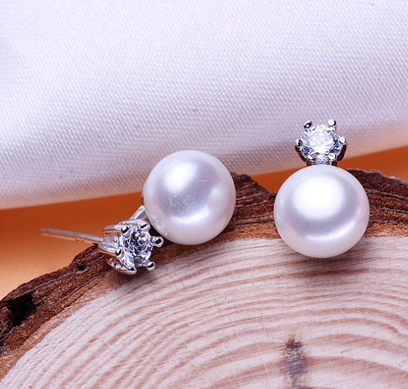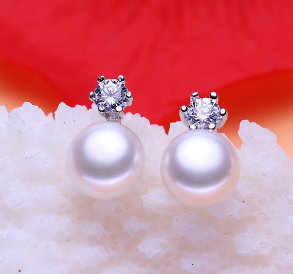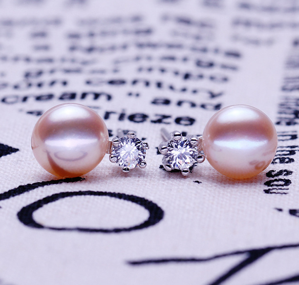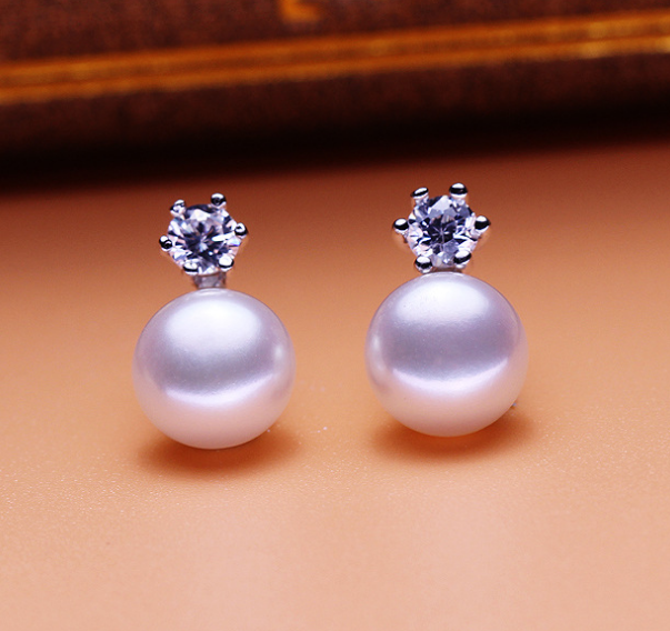 Six claws freshwater pearl silver earrings 8-9mm inlaid zircon earrings earrings jewelry