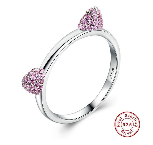Inlaid Crystal Cute Cat Ears S925 Sterling Silver Rin