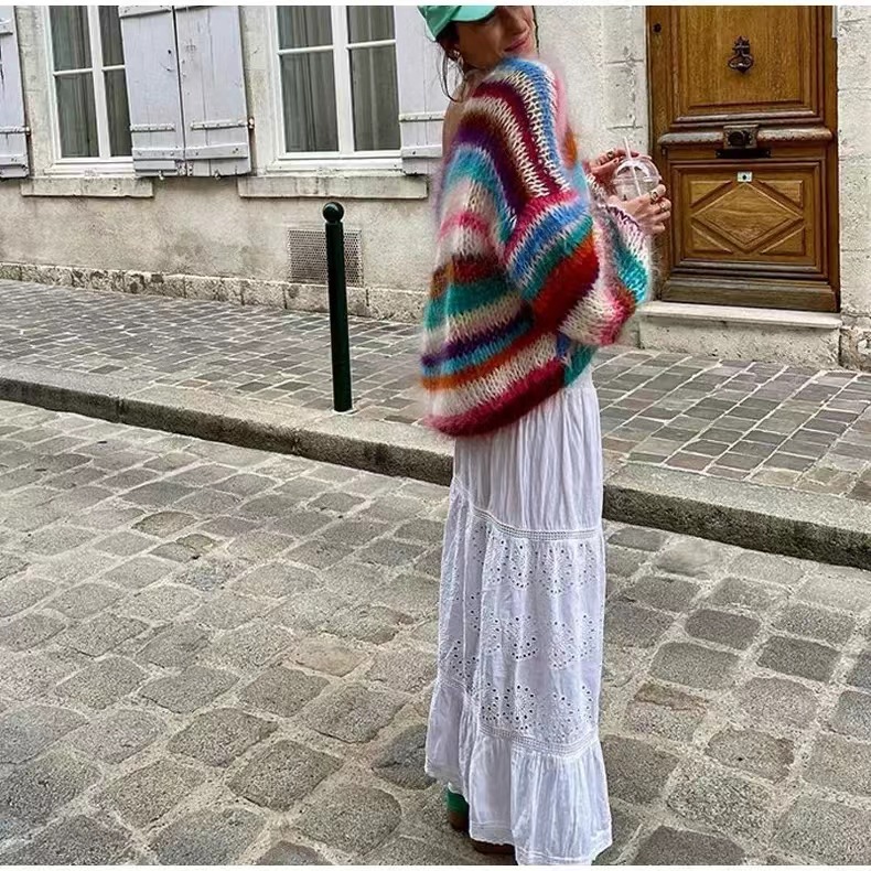 Rainbow Contrast Striped Knitted Cardigan Jacket