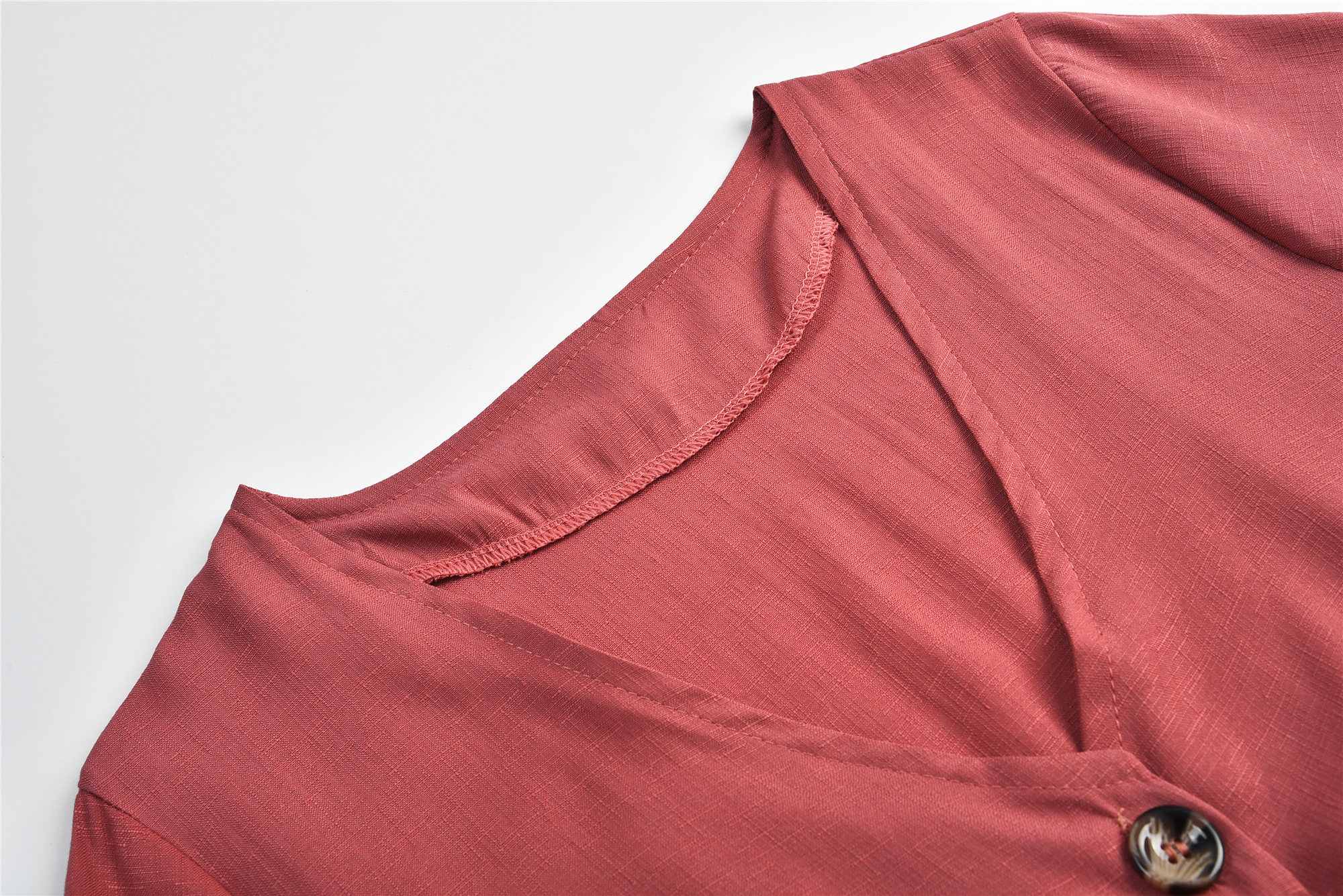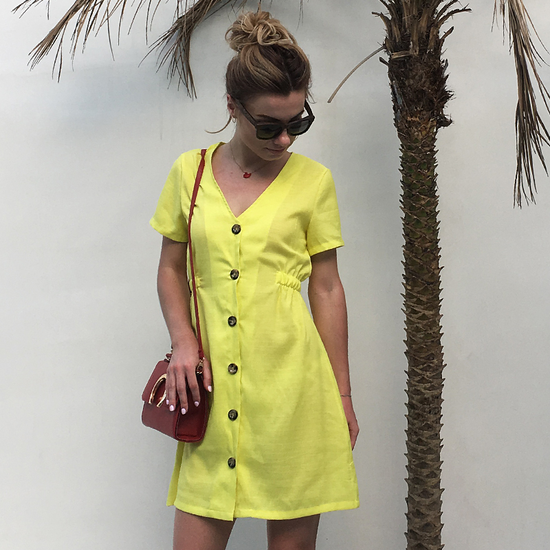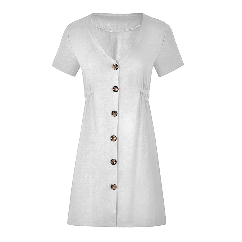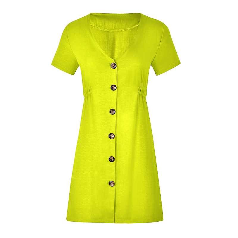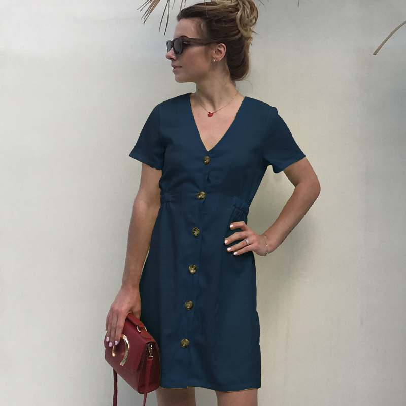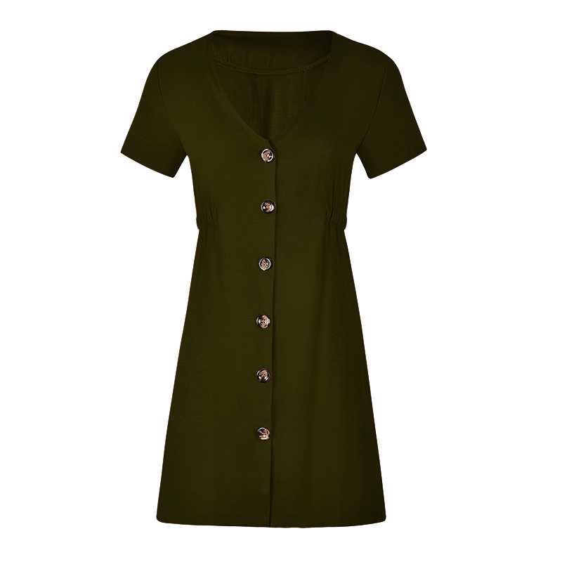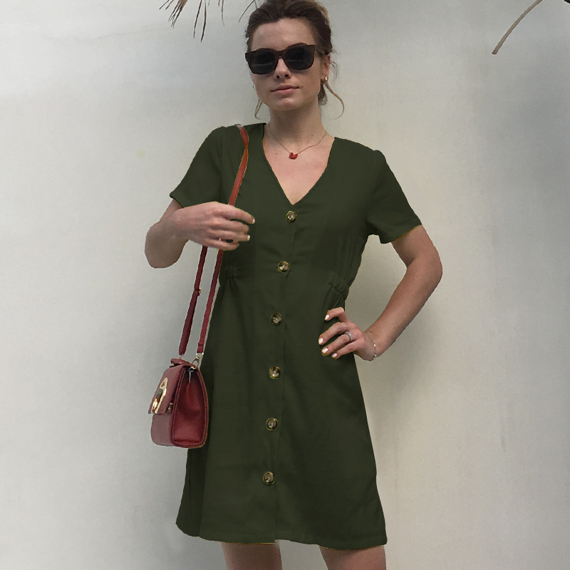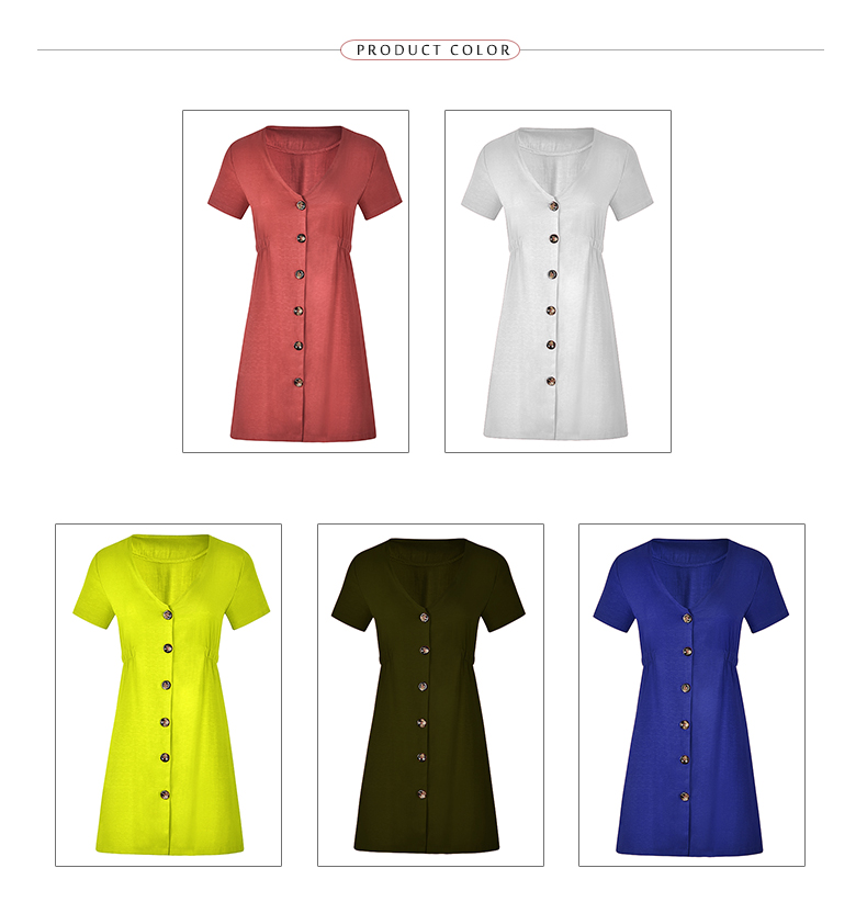 USA SIZE New women's solid color V-neck slim single-row button dress