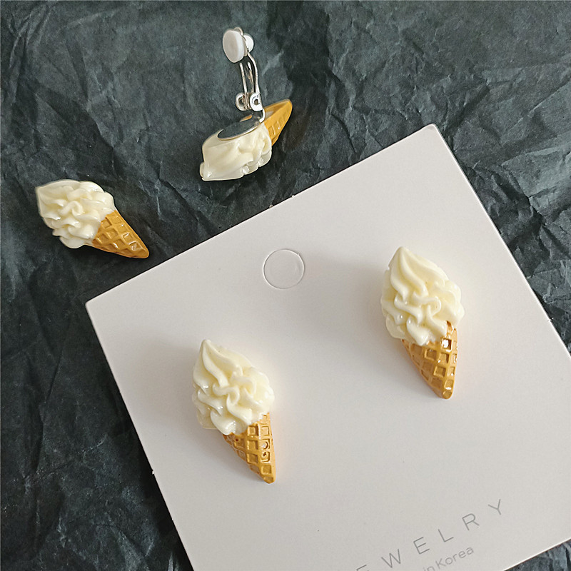 Product information:Type: ear studsColor: ice cream-925 silver needle, ice cream-ear clip, ice cream-ear studsInlaid material: unsetStyle: Women'sMaterial: Plastic/resinShape: ice creamStyle: Cartoon