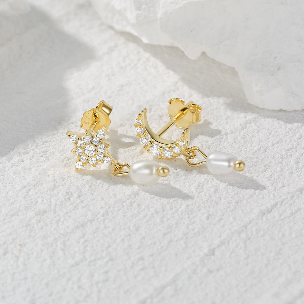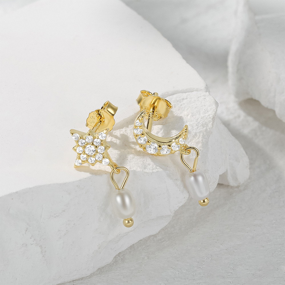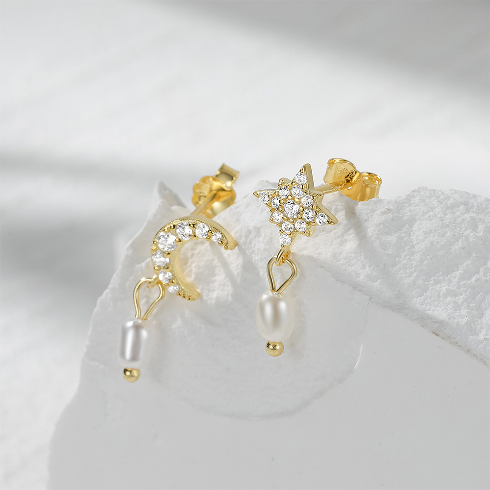 Product information:Color: Gold, white gold colorMaterial: SilverPurity: 925 silverShape: GeometricPopular elements: Pearl, moon, xingxStyle: Fashion ol
