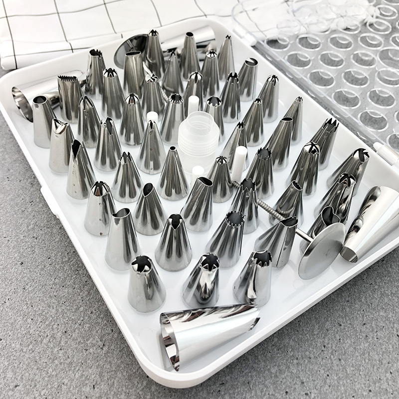 48pcs piping tip+4pcs large piping tip+1pcs converter+2pcs piping nail